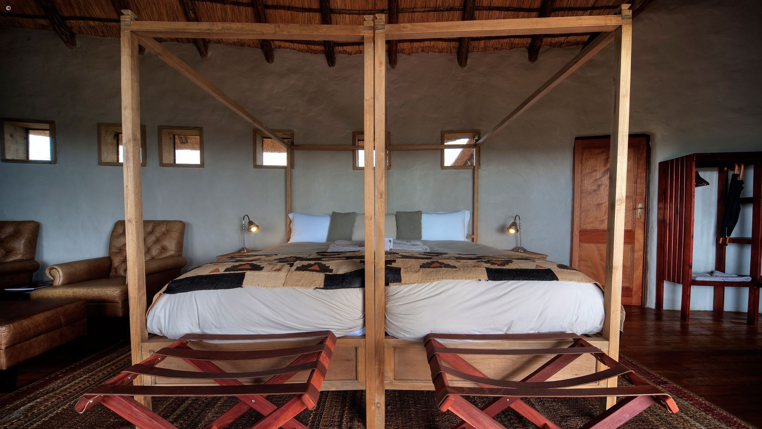 Overlooking the Tau Pan from which this semi-permanent camp gets its name, the maximum here is just eighteen guests in nine comfortable and classic raised, standalone rooms. Each has an en suite bathroom and private decking to make the most of the stark and impressive views over the sandstone ridge.