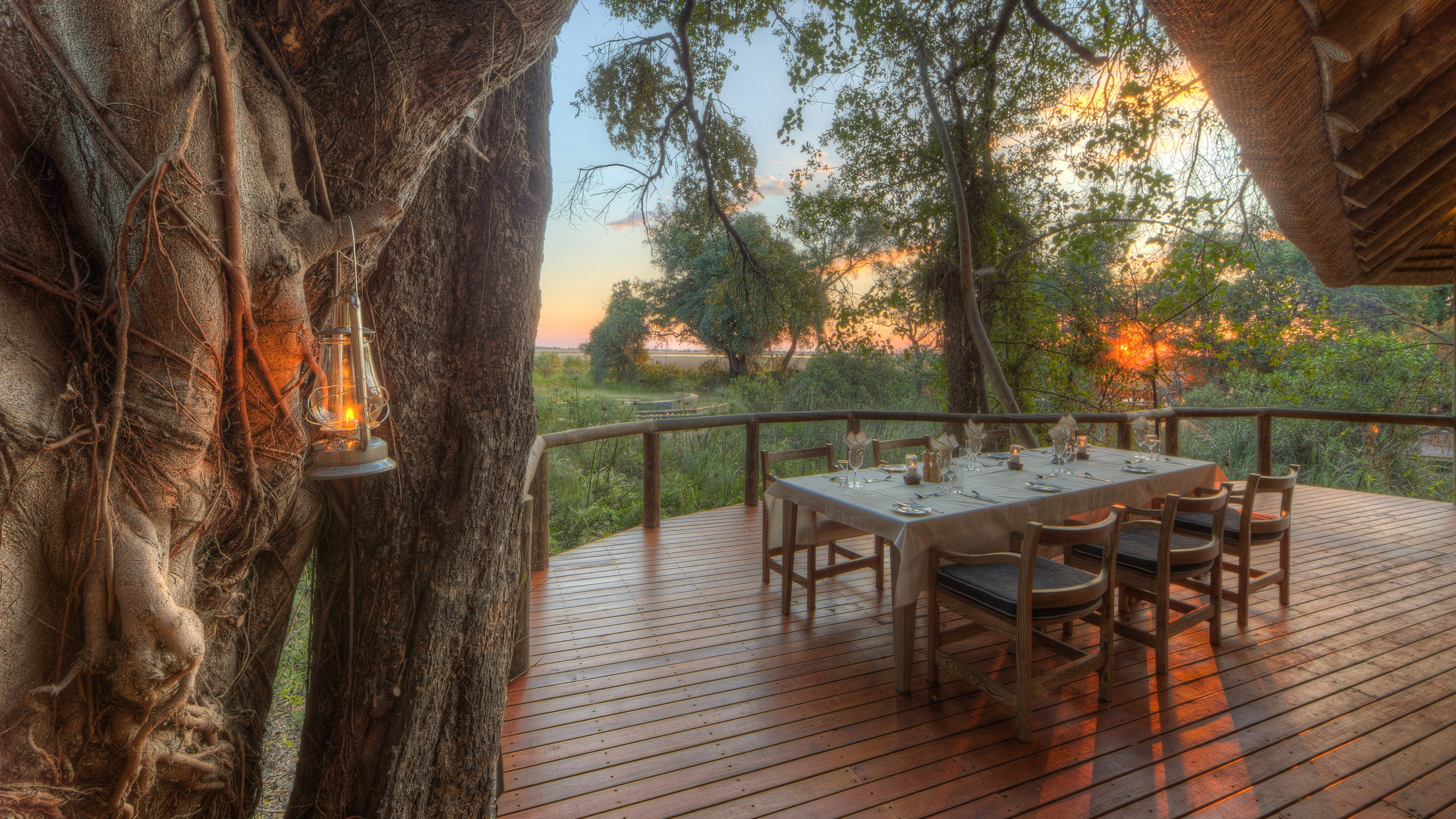 The camp has recently been completely rebuilt and consists of 12 large thatched safari tents, including one family room which includes two separate bedrooms and bathrooms and connects through interleading doors. The bathrooms feature double vanities and showers, and from the private deck, guests can enjoy views over the Moremi Game Reserve. Natural decor and soft lighting lends a warm atmosphere to the tents and they blend harmonious with the surrounding environment.