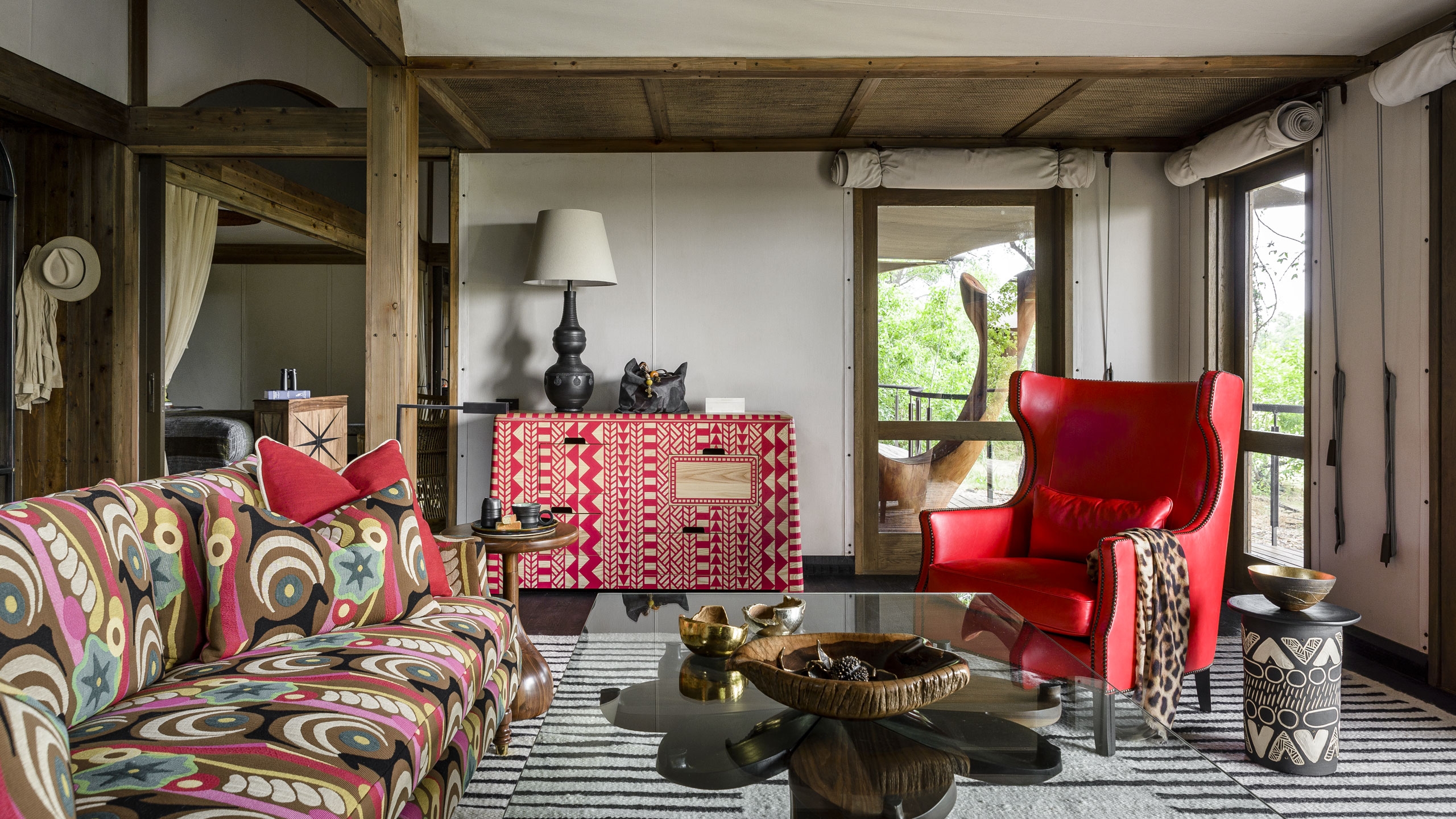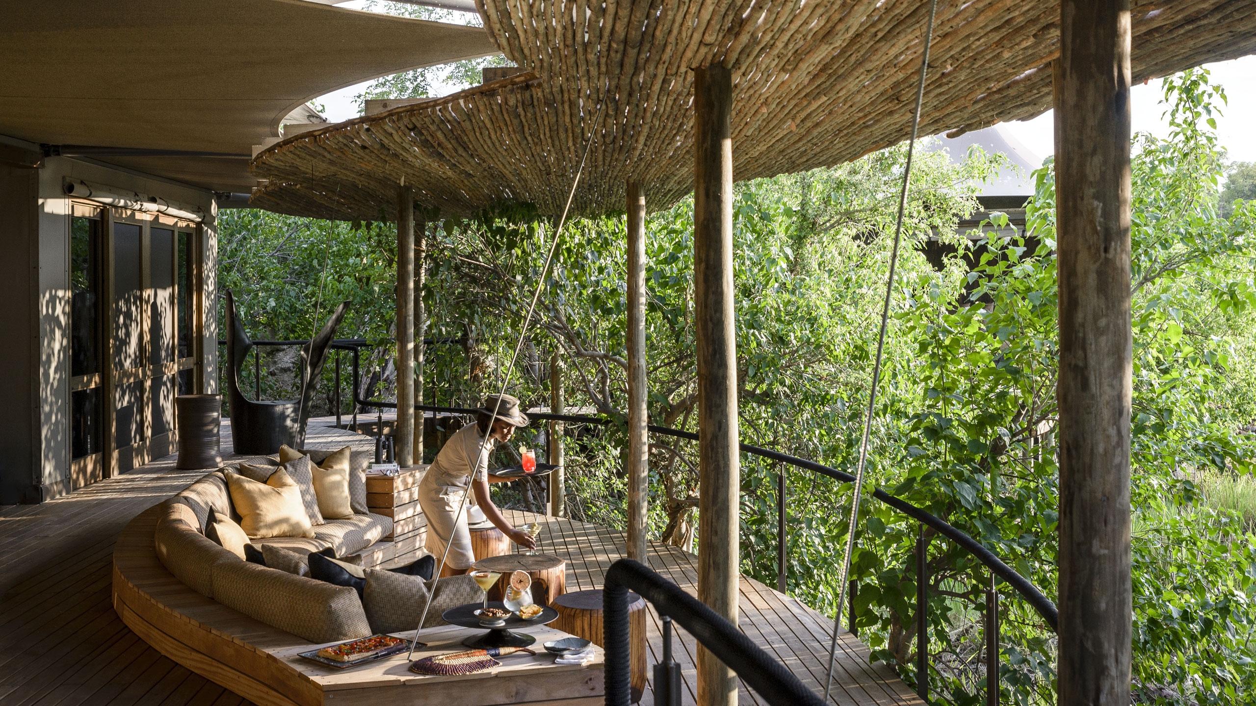 Each spacious tented guest suite has been positioned to offer great views whether you’re relaxing on your deck, or cooling off in your plunge pool. You’ll also find the tents include spot-cooling, meaning you can find respite from the hot afternoons indoors. Spend time investigating the ‘curiosity boxes’ you’ll find mounted on the walls in your room and the drawers filled with fascinating artefacts and information. They’re a great way to learn more about the area’s wildlife and rich history. Look out for unique elephant and wild dog art in the rooms and library made from reclaimed snare wire.