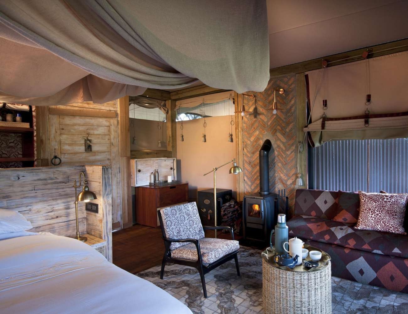 This is a private 77,000 acre private reserve, helping to protect and conserve the amazing wildlife of the area. The lodge itself has just 6 comfortable tents with a maximum of 12 guests. The tents are comfortable and cosy, decorated with brass fittings and period pieces, harking back to the style from the 1920’s. Photos of the Joubert’s work adorn the walls of the lounge and bar area, where guests are encouraged to mingle and exchange stories of the day’s viewing.