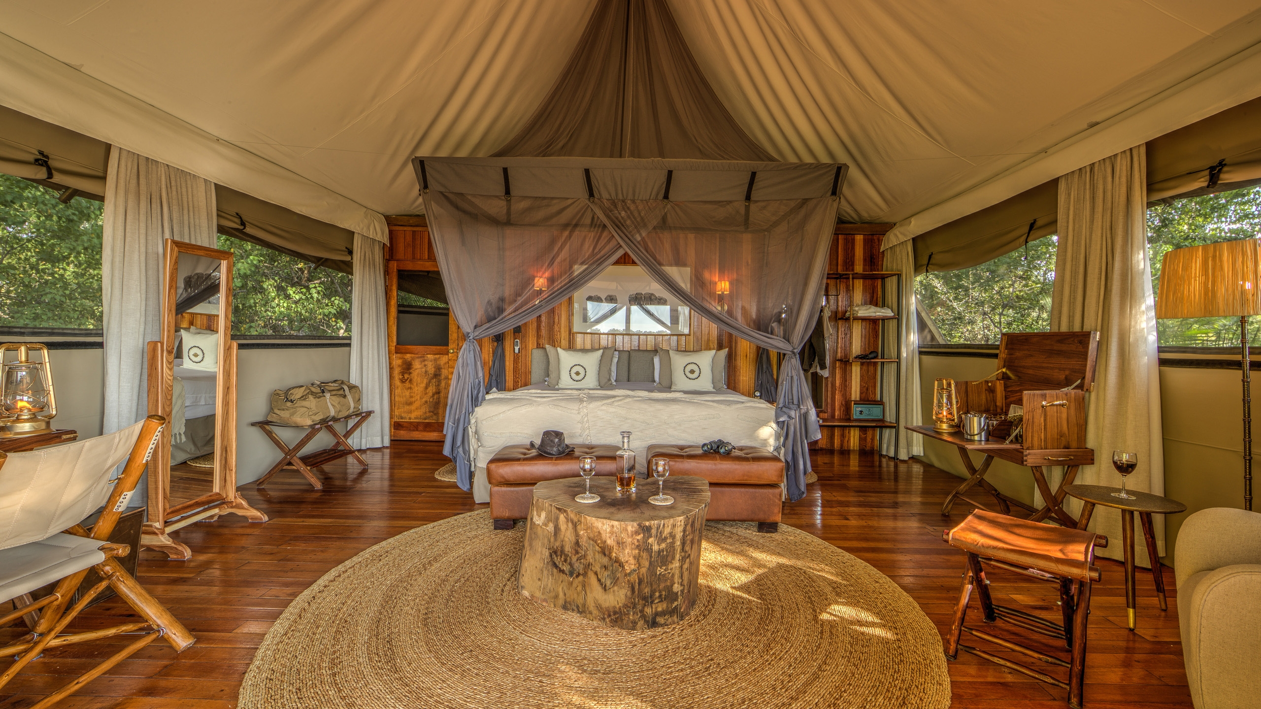 The camp consists of seven luxury tents and one family tent, all with en suite bathrooms. The spacious tents offer enough privacy while being just a short distance from the main camp where you’ll find a comfortable lounge area that looks out over the beautiful surroundings. There is also a sleep-out deck that offers guests the opportunity to spend a night under the star-studded African sky.