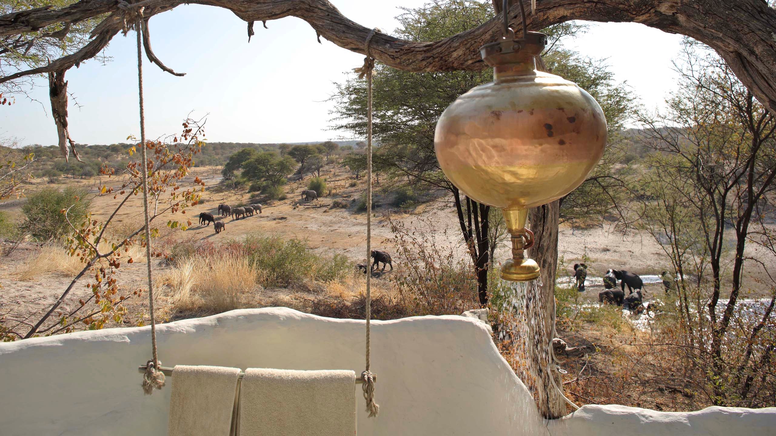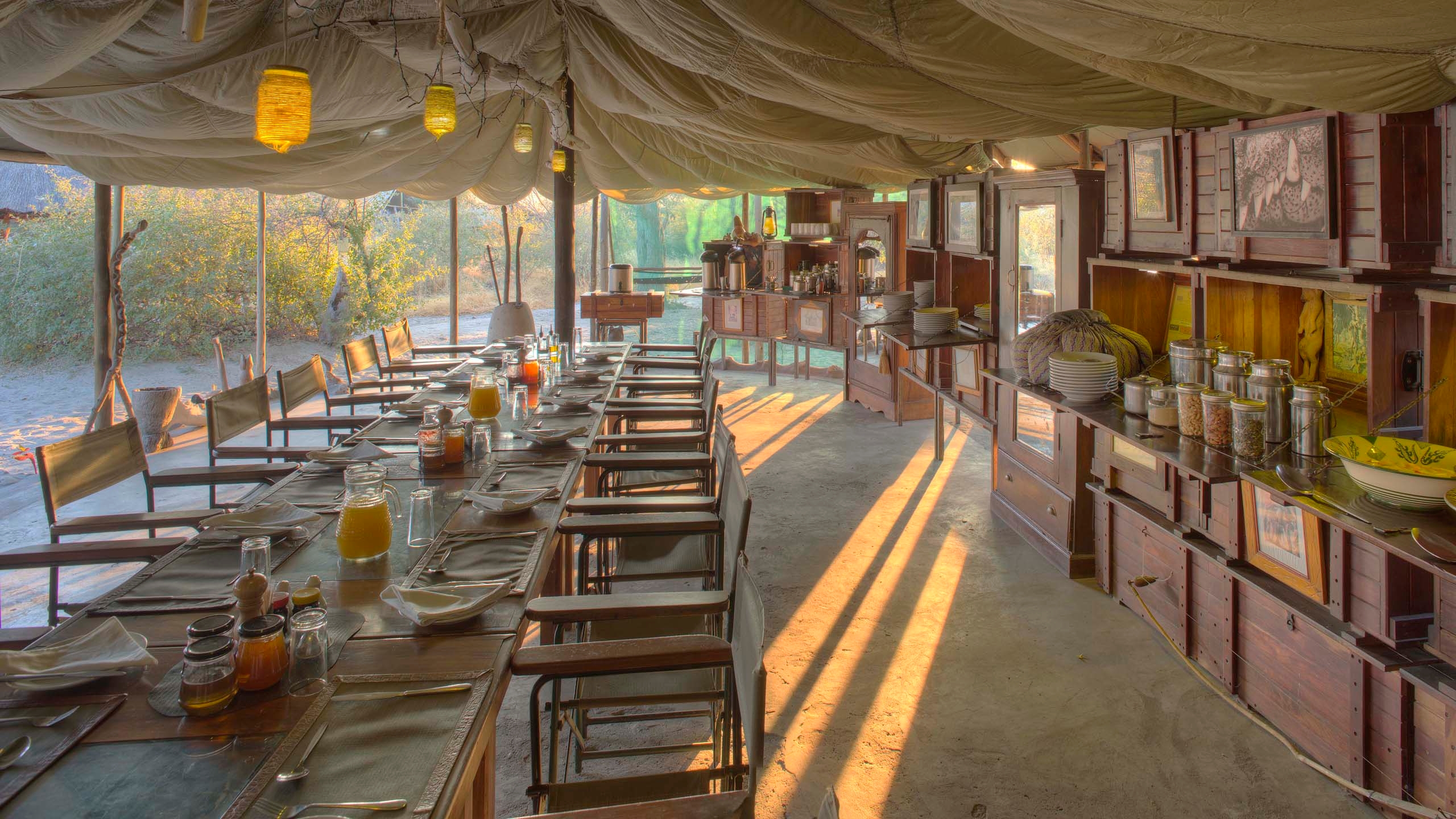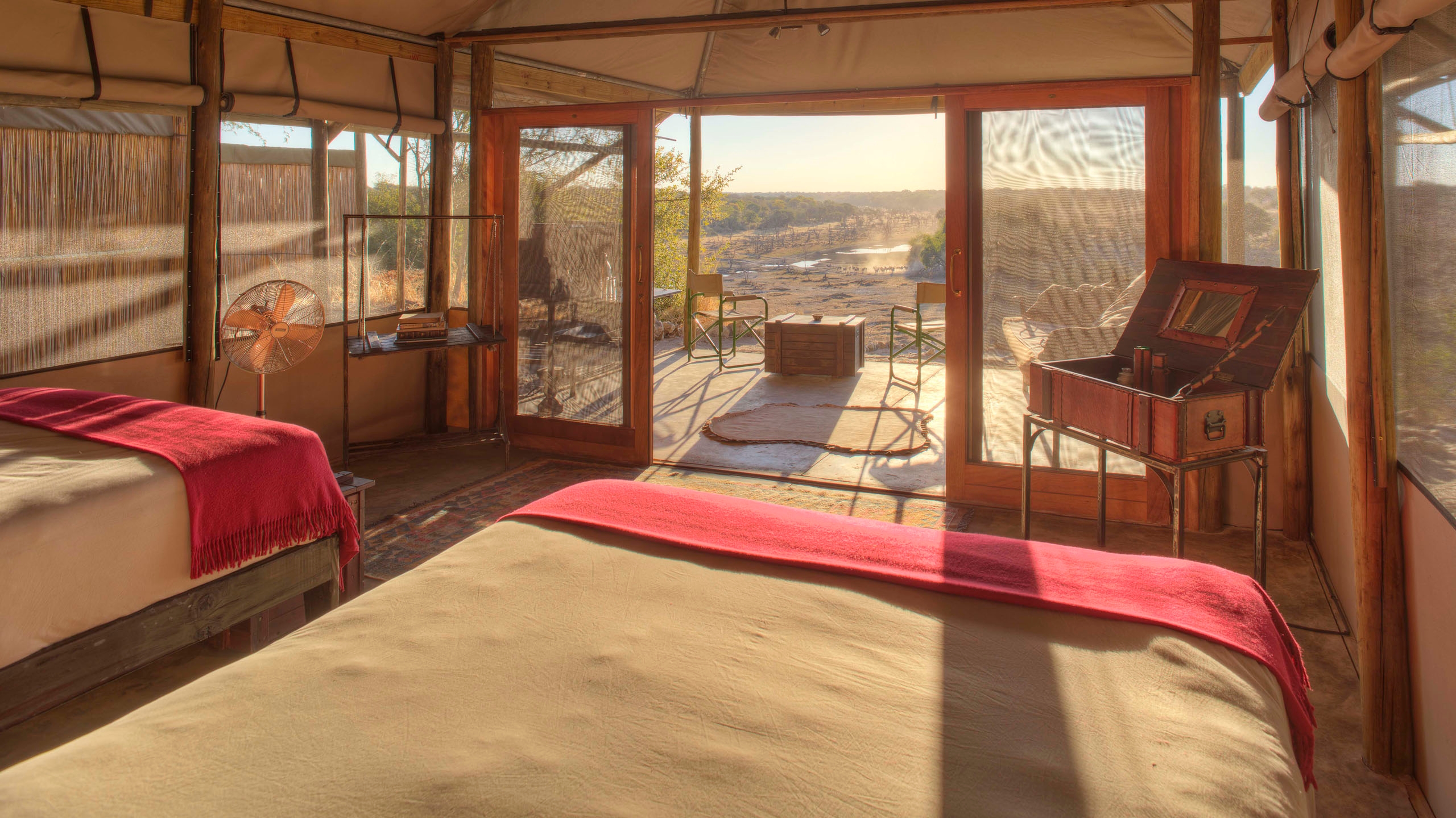 Meno a Kwena boasts nine classical and comfortable canvas tents, all with en suite bathrooms, with verandahs overlooking the river which draws elephant and zebra from far around with some of the best game viewing right in front of the camp itself.