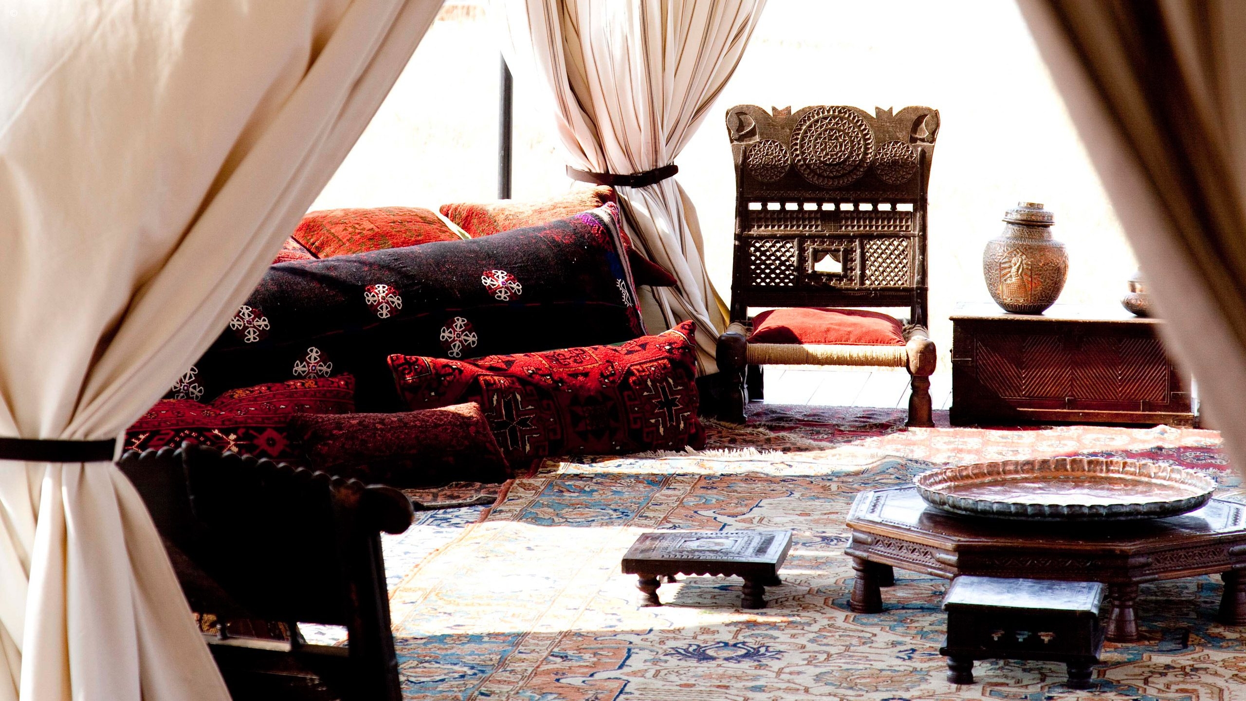 The camp itself mirrors the simplicity and open spaces of the pans. Six elegant spacious pavilion style tents sit each under a cluster of tall palms. Period style pieces adorn the interiors with lovely wooden chests, boxes and brass fittings about. Bathrooms are equipped with bucket showers and a flush toilet. The rooms are lit by the warm glow of old-fashioned spirit lamps.