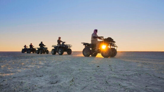Apart from taking in this eerily peaceful environment, you can also discover the history of the San people at archaeological sites. Hop on a quad bike to speed across the flat terrain, encountering ancient fossil beds and uniquely adapted creatures like meerkats and hyenas along the way. For the full experience, spend a few nights in one of San Camp’s elegant tents.