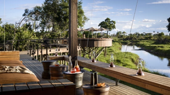 As with many stunning camps in the Delta, there’s no compromise on wild, exclusive safari experiences either. This camp in Moremi Game Reserve is perfect for honeymooners looking for a one-of-a-kind property on their romantic safari.