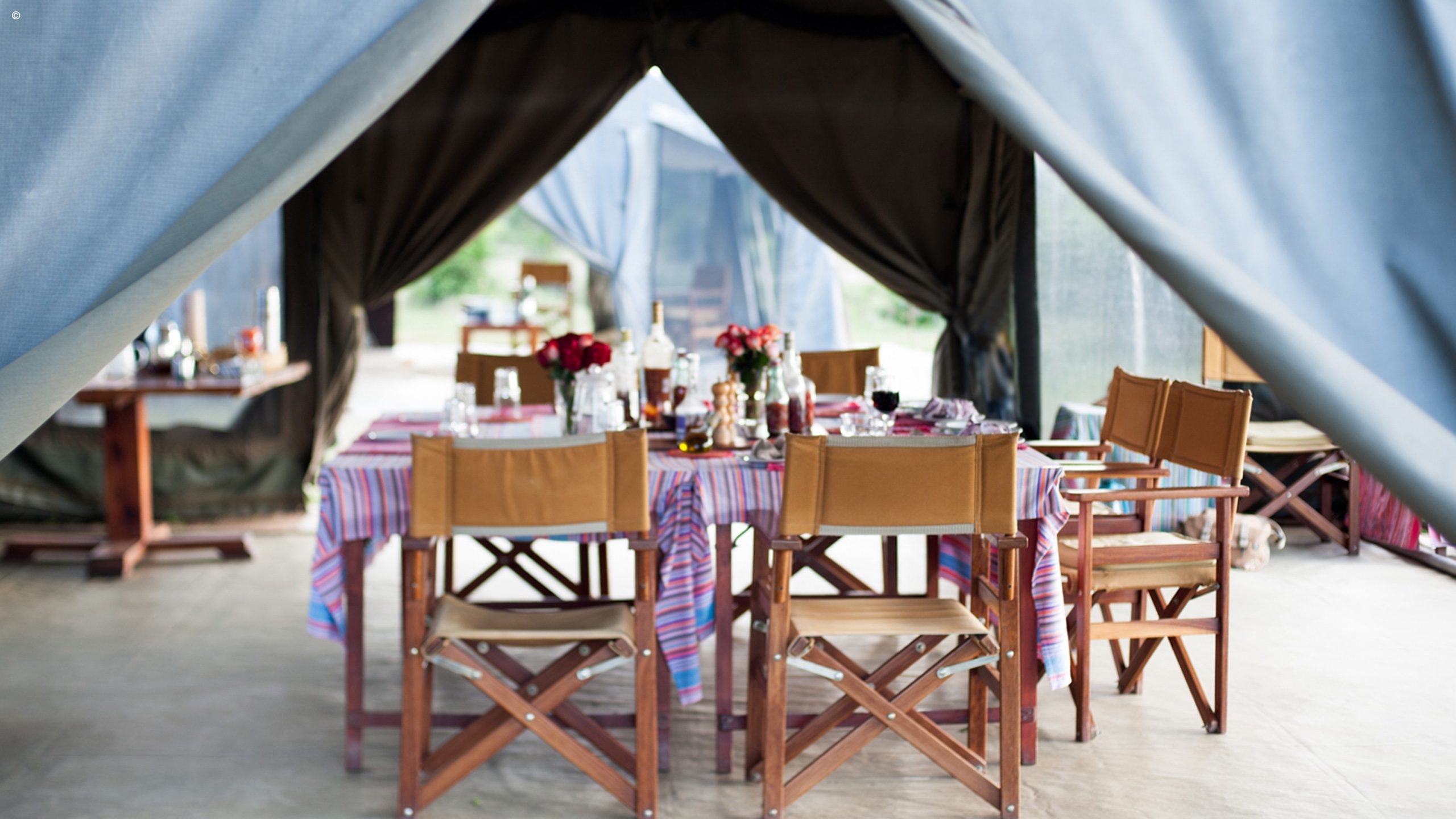 The two communal tents looking out over the sprawling plains are the hub of the camp. Meals are enjoyed under canvas in the dining tent, while the breezy mess tent with its inviting sofas and armchairs encapsulates the friendly, relaxed atmosphere in camp. When darkness falls, evenings are spent around the fire, waiting to catch a glimpse of a rhino ambling down to drink at the river.