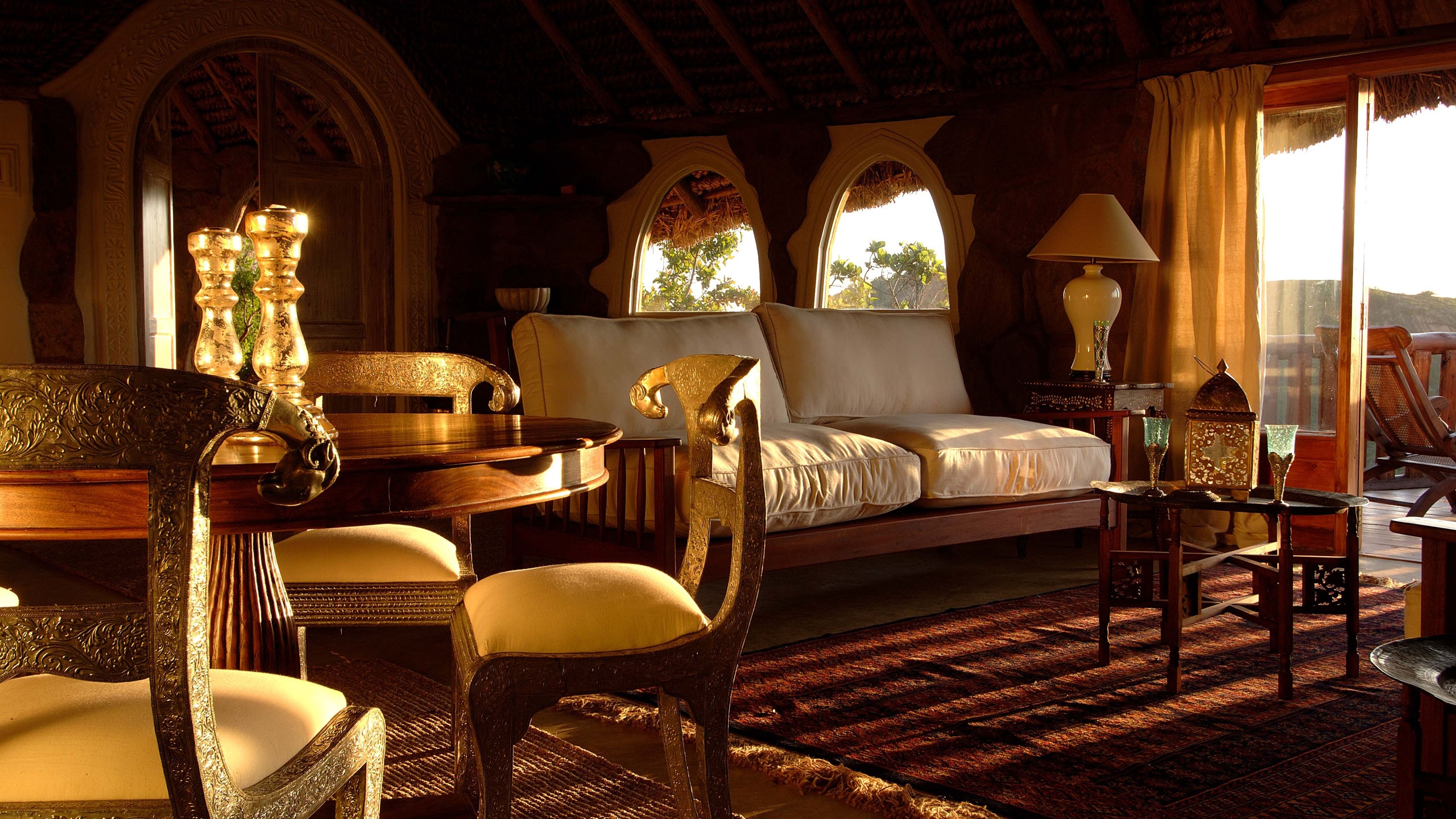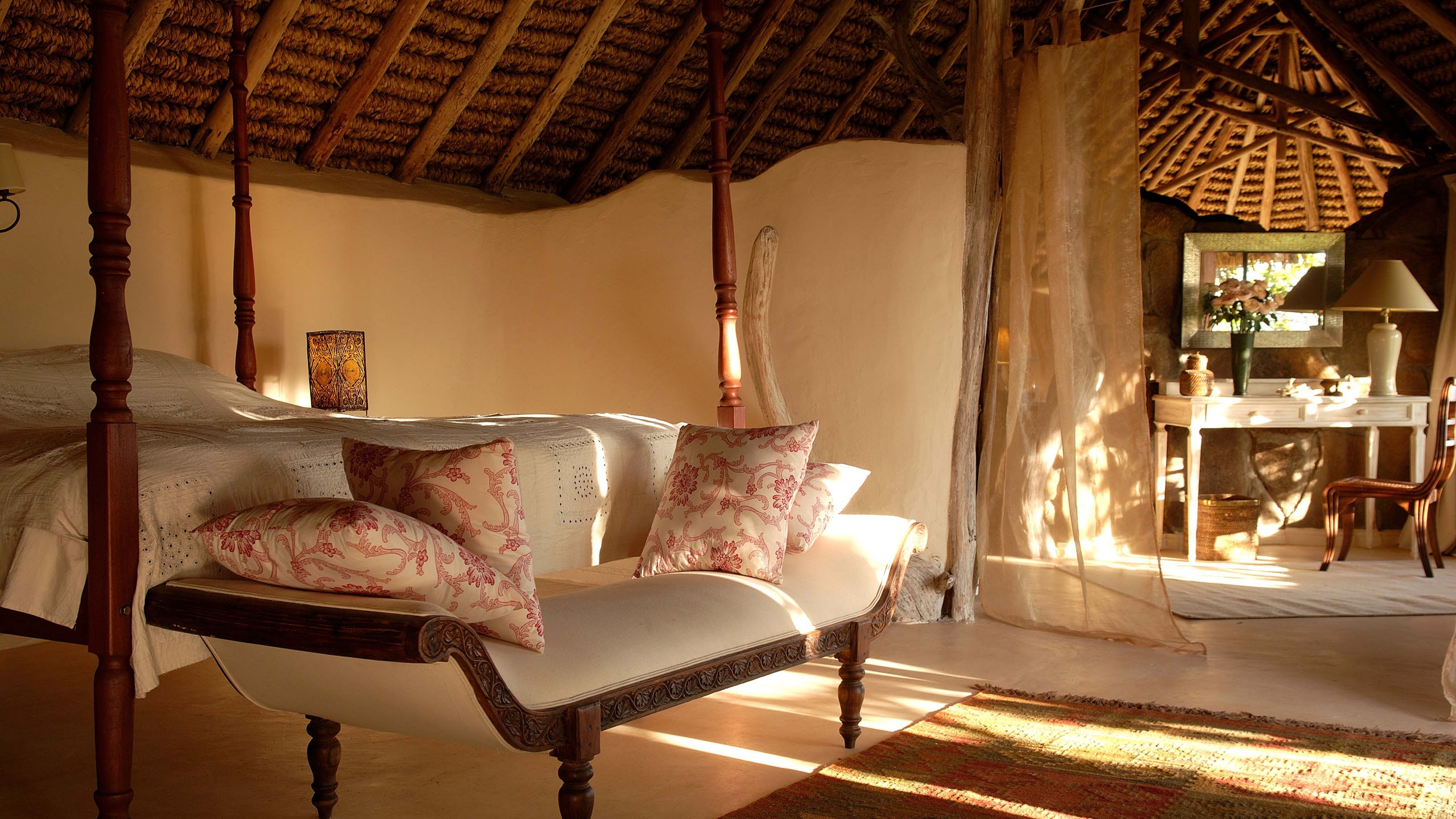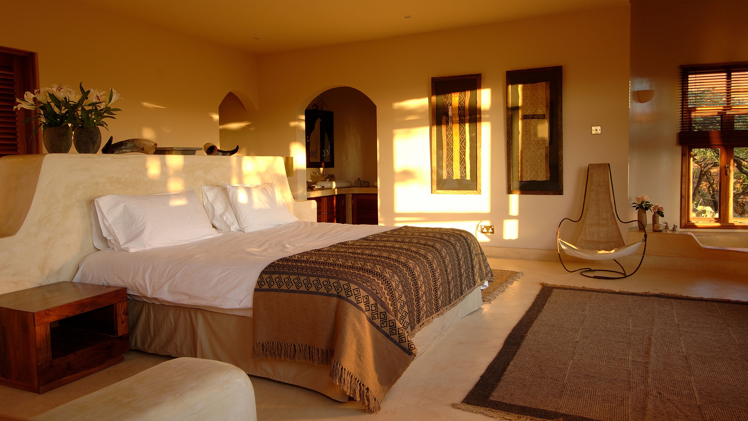 All of the architecturally magnificent houses have access to a mixture of courtyards, gardens and decking. The stylishly contemporary African style Chief’s house is the largest with three en-suite bedrooms which sleeps six very comfortably. The Colonel’s House has two en-suite bedrooms. The Sultan’s House and the retro African style Eyrie are rather romantic houses with just one bedroom.