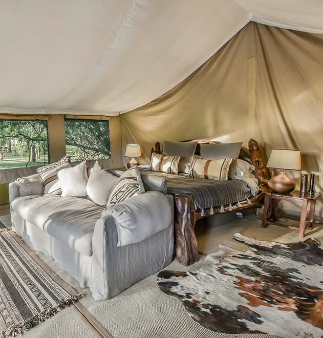 On the main deck guests can congregate around the campfire and enjoy a sundowner while exchanging stories from the day. There is also a library with comfy leather chairs and a selection of safari literature. Guests can also enjoy access to an inviting swimming pool, allowing you a chance to cool off while absorbing the stunning natural surroundings. Alongside game drives you can enjoy a picnic in the reserve for lunch, meet the local Maasai herdsmen, or soar above the plains in a hot air balloon.