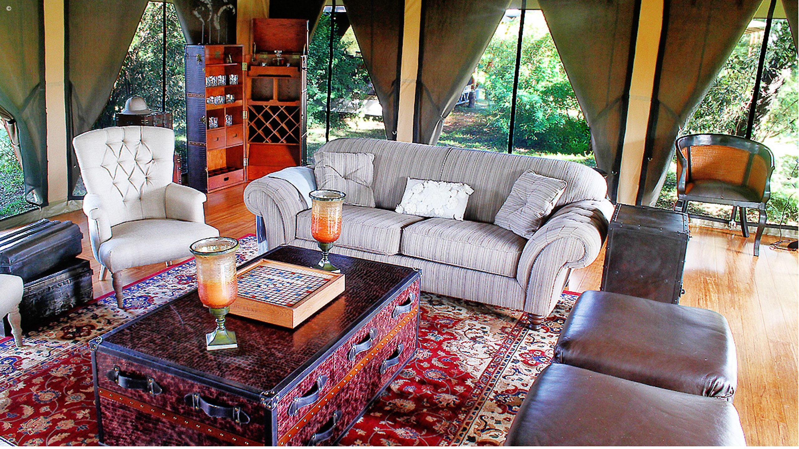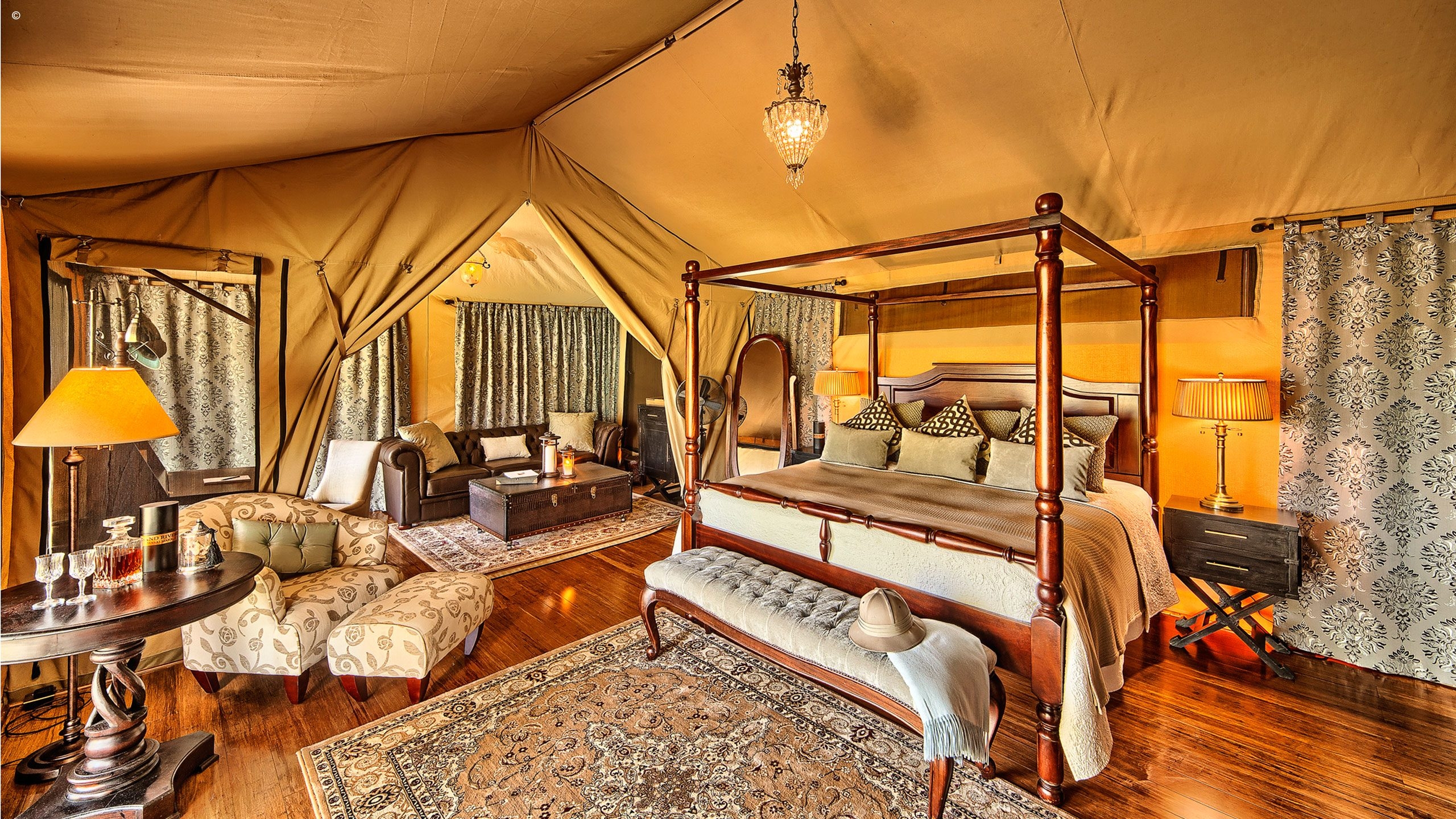 Sitting on the banks of the Sand River, this colonial Masai Mara camp echoes the decadent days of 1920’s safari in a sublime and secluded game-rich location.