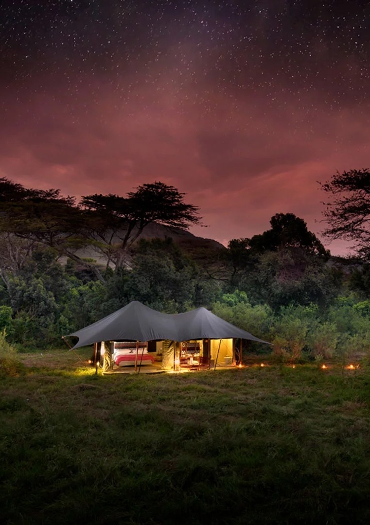 Angama Safari Camp, a light-footprint sole-use tented camp accommodating up to eight guests in four en-suite tents, is located deep in the Maasai Mara. This unique camp captures the romance and adventure of the Golden Age of safaris, but with a lightness of spirit. Enjoy the comforts of 21st century camping, but with the thrill of having nothing but canvas between you, the Mara and year-round abundant wildlife right on your doorstep. The tents have been designed to maximise light and views across the plains. With a dedicated safari vehicle, guide and Safari Camp team, each day’s programme is entirely up to you.