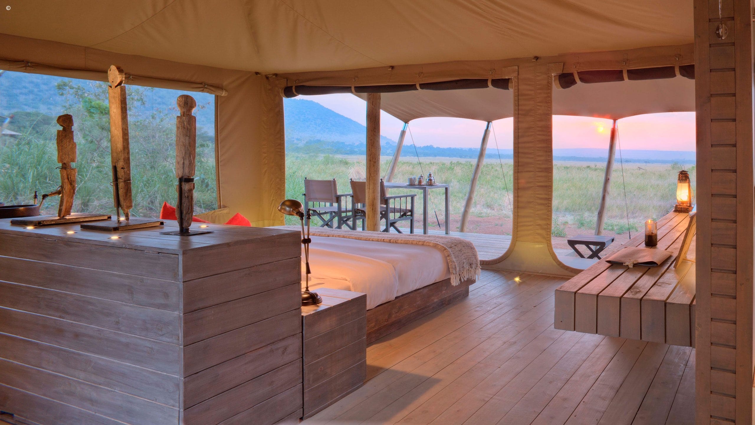 Hemingway-style tents in a private concession adjoining the Maasai Mara
