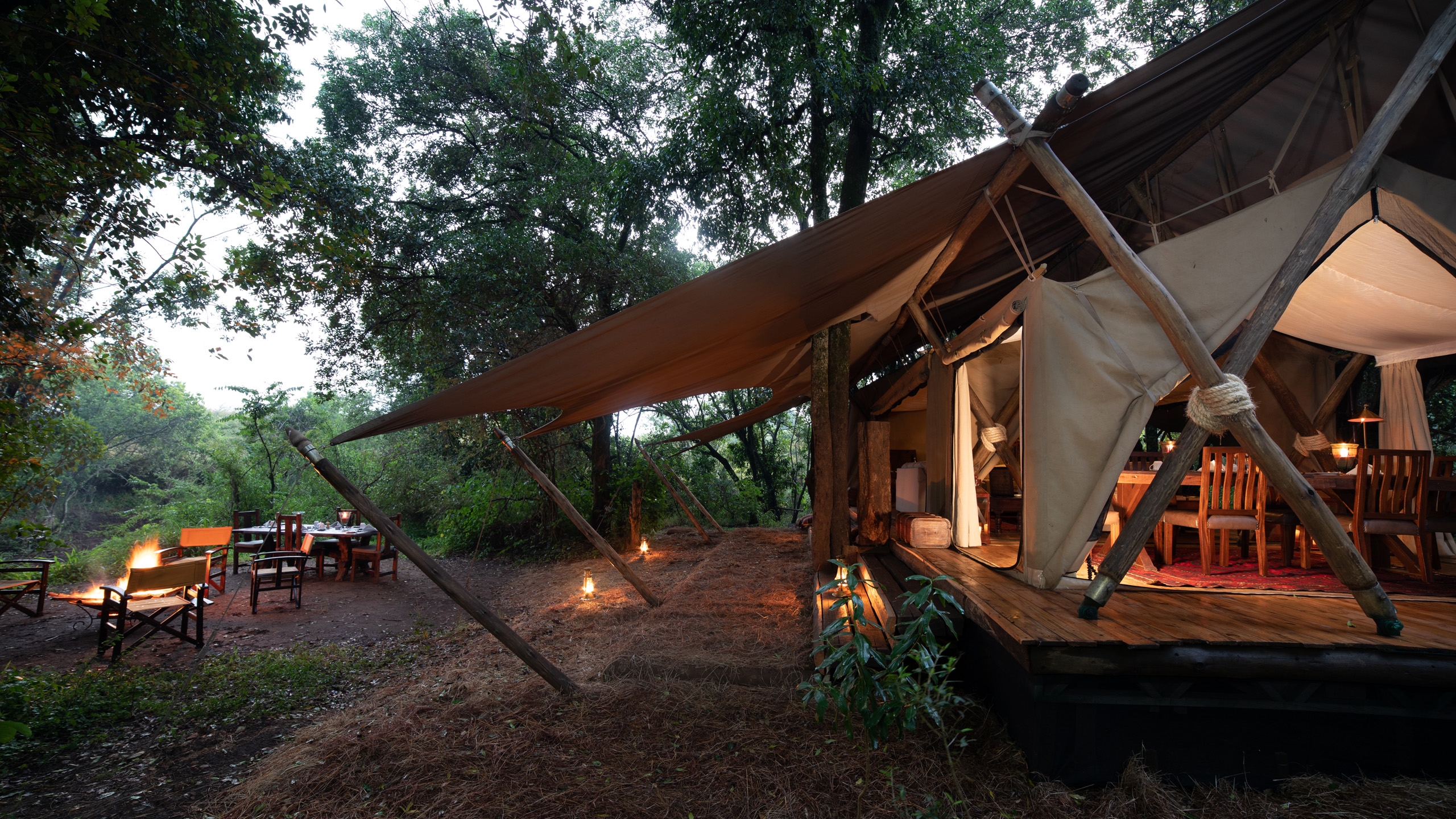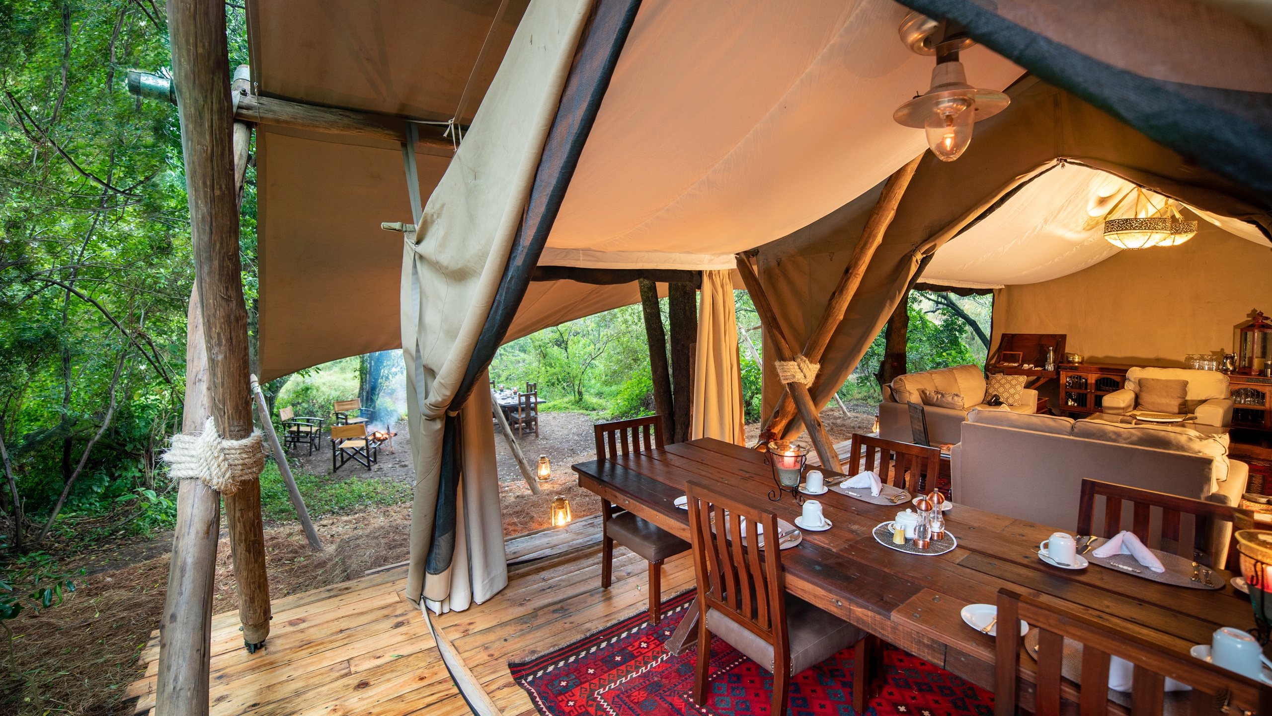 Mara Toto is a small seasonal camp nestled in a thick ebony grove in a small bend in the Ntiakitiak River, just a few kilometres from its sister camp, Mara Plains. The camp draws from Africa’s original explorers’ designs and will appeal to those interested in East Africa’s romantic safari era. It’s name comes from the Swahili word for “favourite child”, which is fitting considering how quickly it becomes a favourite for anyone who stays there. With just four tents that can sleep eight people, it is ideal for small groups looking for privacy in a stunning setting. The tents have plumbed-in hot and cold water for bucket-effect showers.
