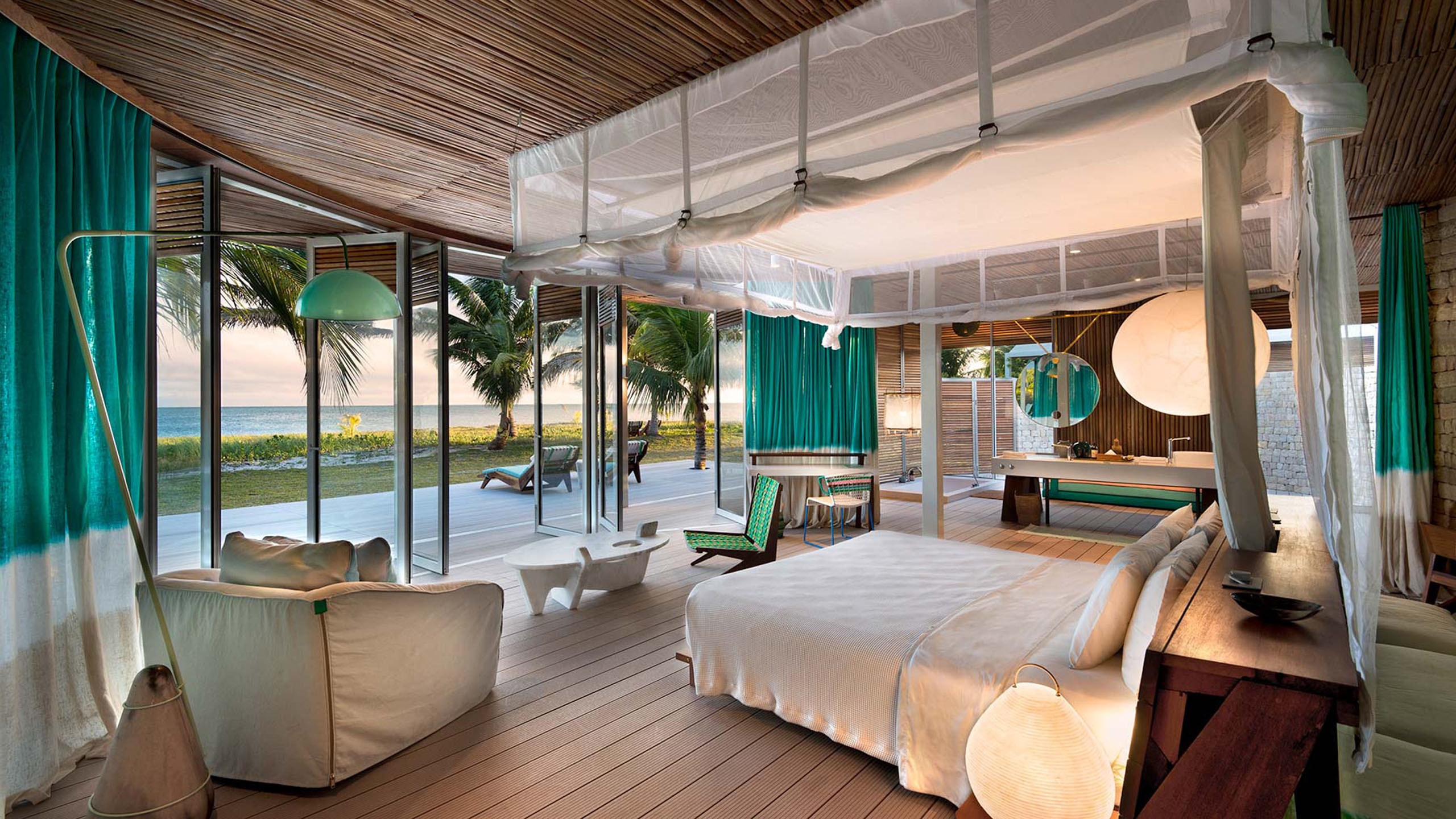 14 vast villas line the western side of the island, just a few steps from the beach, for fabulous Indian Ocean sunset views and come with one, two or three bedrooms as well as a kitchenette, lounge, private deck and pool. Muted tones of sand, wood and water are reflected in the modern design alongside local materials and handcrafted pieces.