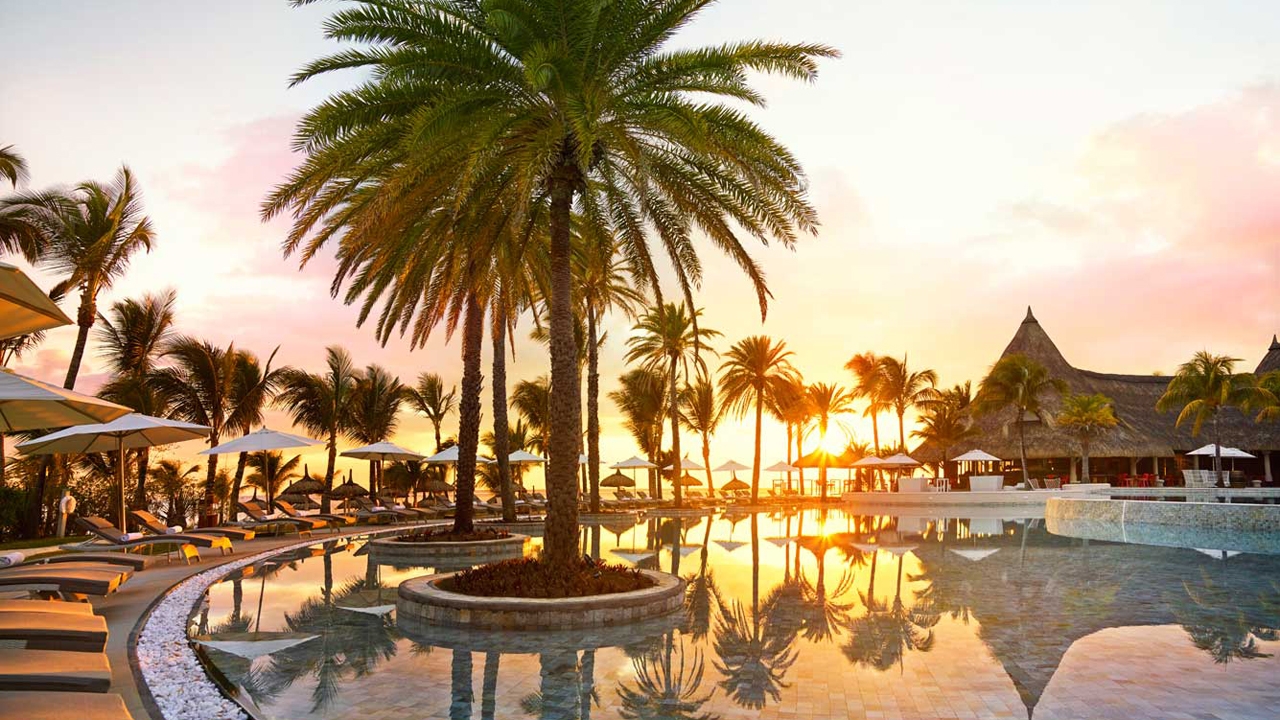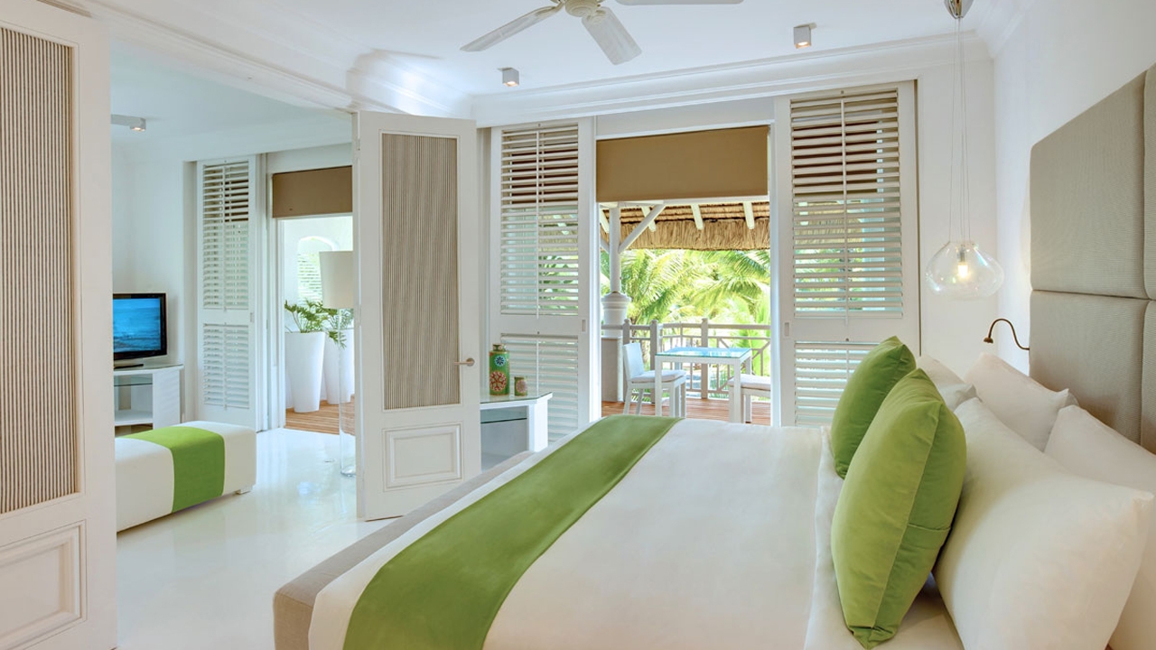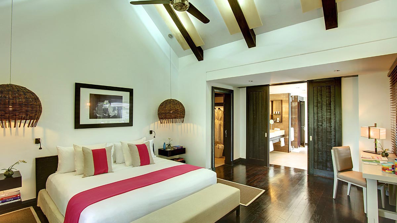 The 186 rooms were designed by Kelly Hoppen. There are a variety of suites and villas to choose from, with ocean, garden, beach or pool views. Interiors are contemporary and uncluttered, with bright colour accents.