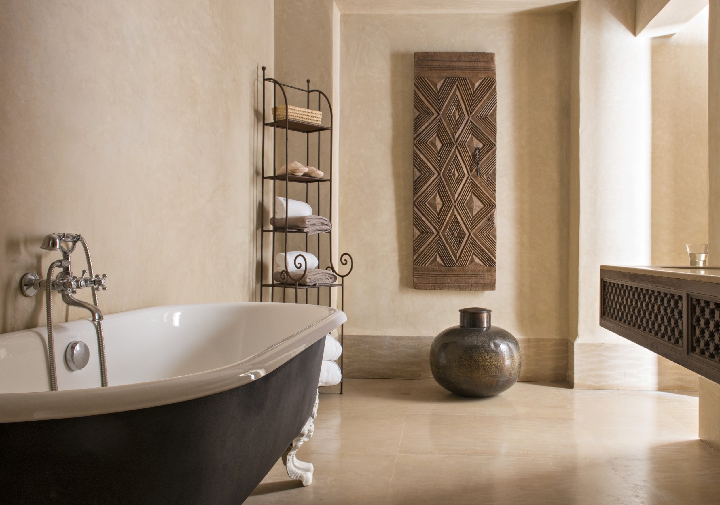 A sparkling swimming pool sits at the heart of the property (a can be found on the rooftop overlooking second rooftop overlooking the Koutoubia and Atlas Mountains), next to which is the excellent Mediterranean restaurant. Other spots to relax include fire-warmed lounges, a cigar cellar, an impressive hammam and a spa.