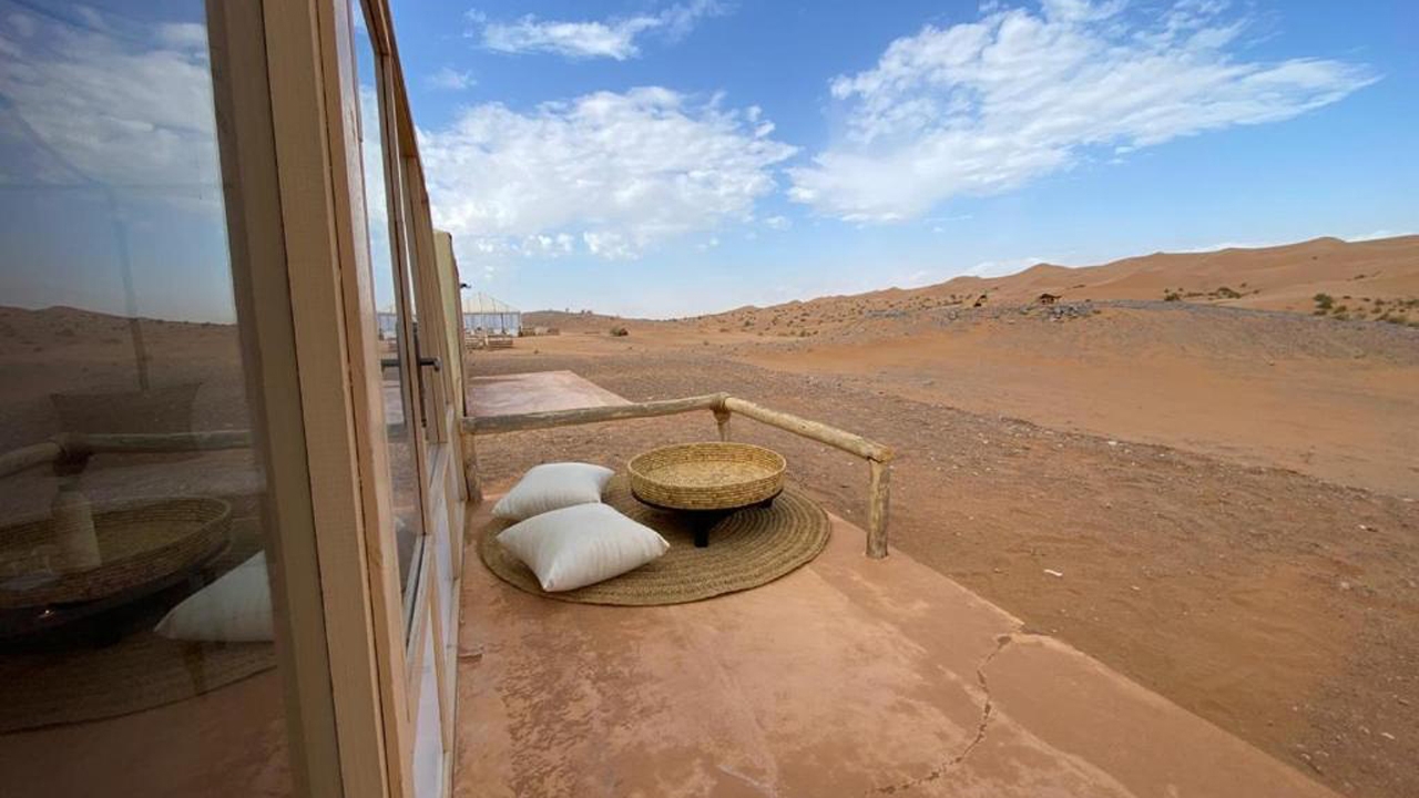 A romantic private camp deep into Morocco’s portion of the Sahara on the ancient salt lake of Iriki some five hours south of Dar Ahlam in Skoura, Dune’s Camp is the spot for an unforgettable night in the desert.