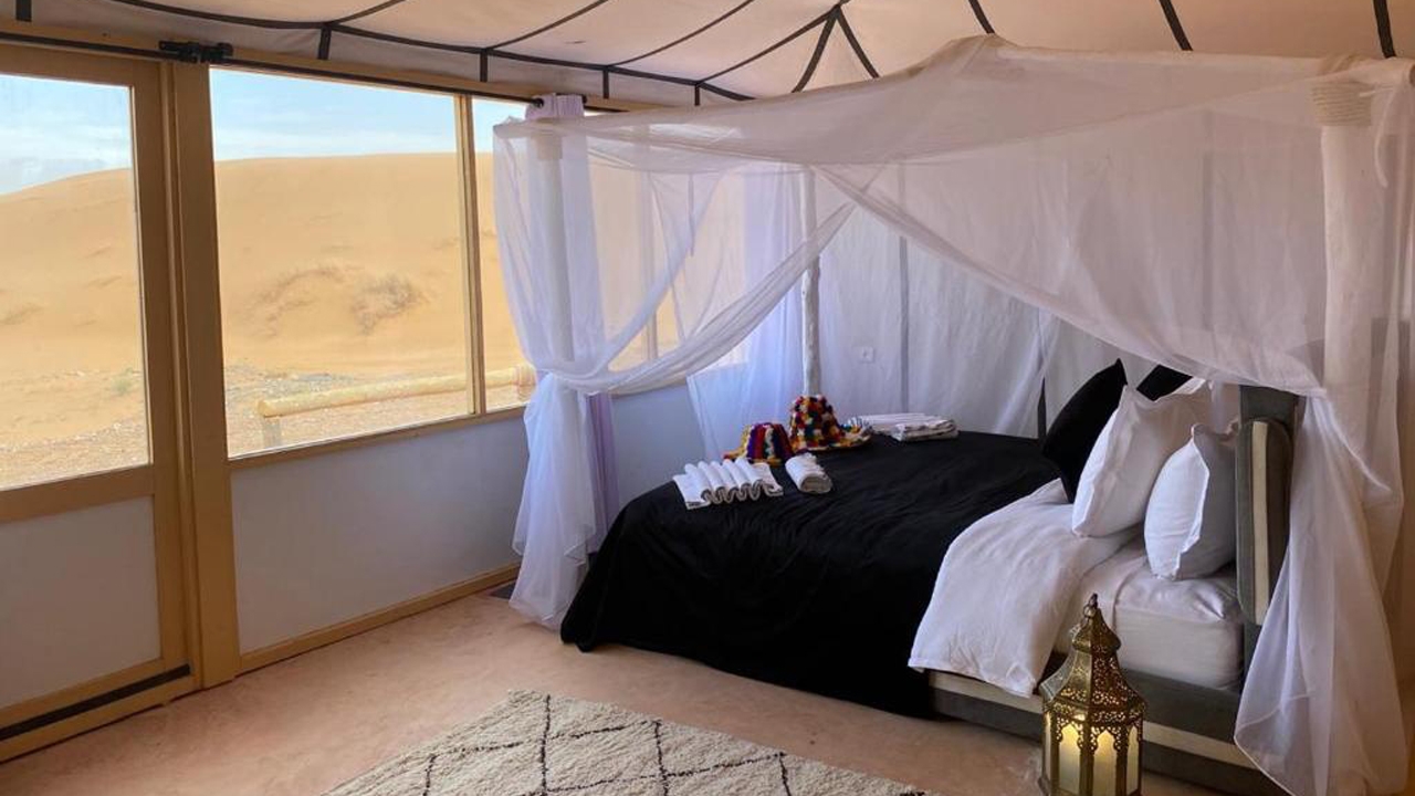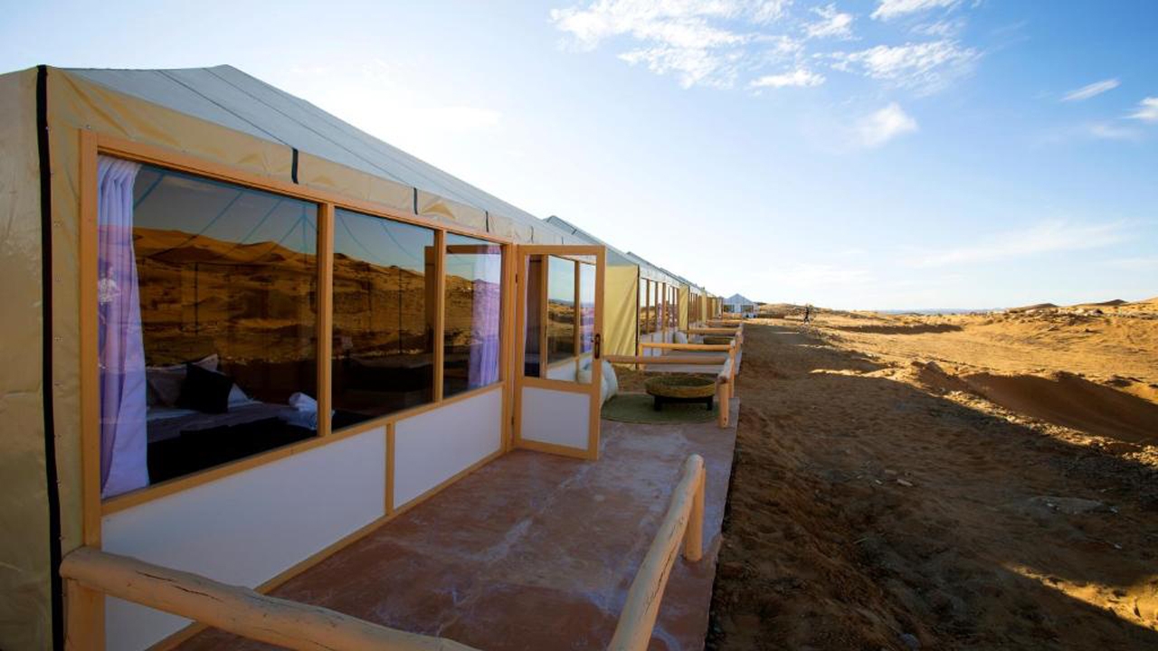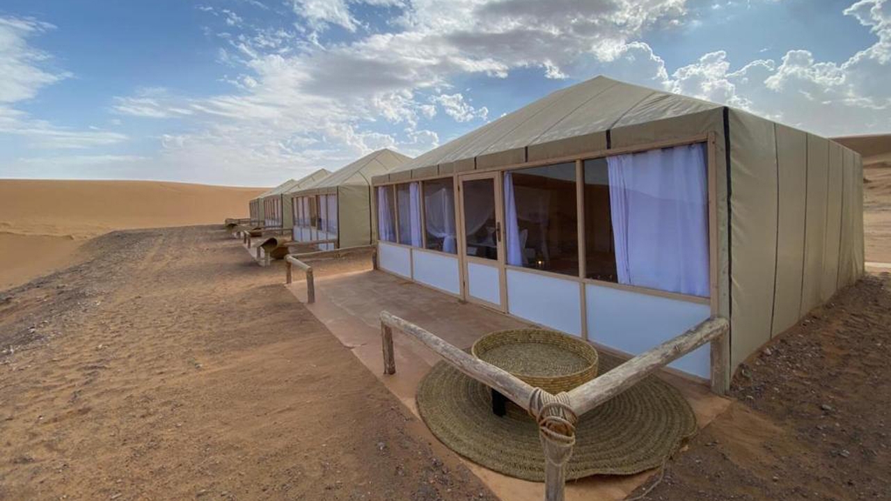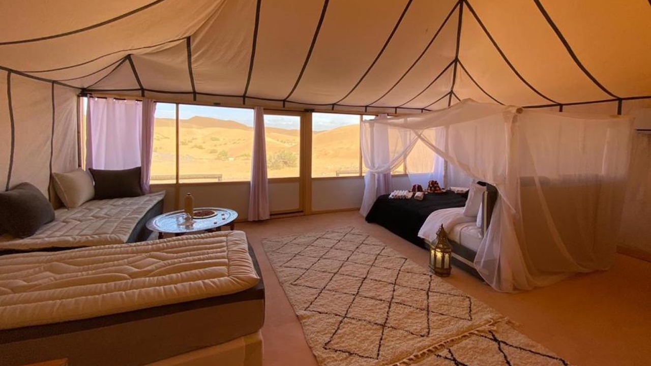Situated among the beautiful sand dunes of Erg Chebbi, Itran Royal Camp offers you a relaxing place to drink in the sights and sounds of the ever-changing desert. It is the perfect getaway for honeymooners or small groups looking for uncompromising solitude.
