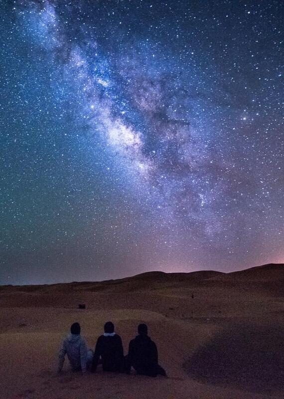 Stargazing in the Moroccan Sahara is truly exceptional thanks to low light pollution and perpetually clear weather. All you have to do is emerge from the comfort of your cosy tent at Merzouga or Azalai Desert Camp and look up. The hardest part is tearing your eyes away from the glittering celestial show above you.