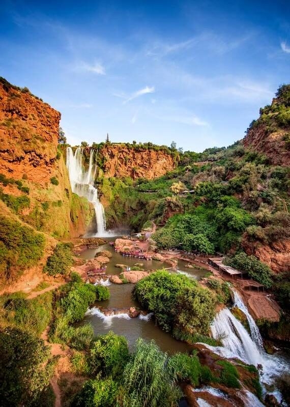 Just a few hours’ drive from Marrakesh you’ll find one of the most beautiful places in Morocco. The Ouzoud Waterfalls consist of several different falls cascading over rough reddish cliffs into a series of pools. Their name is the Berber word for ‘the act of grinding grain’, likely referring to the grain mills that can still be found above them.