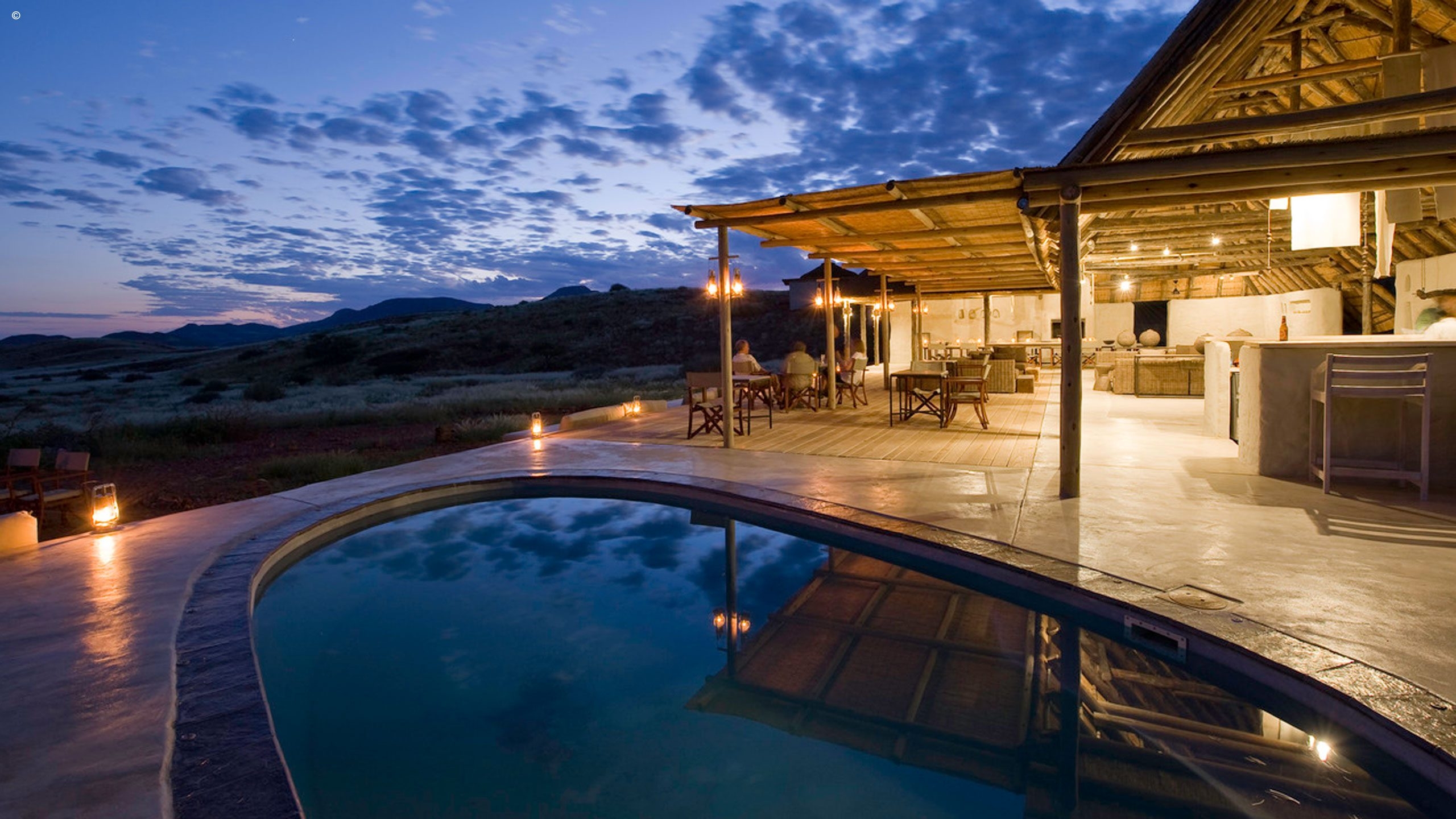 Other facilities include a large viewing deck boasting magnificent views, a restaurant and bar area, swimming pool and outside boma, while their list of exciting activities is also impressive. During the day go on guided nature walks to sundowner drives, to tracking the rare desert-adapted elephant. As evening comes, dine on meals by lantern light followed by the staggering stargazing that Namibia has to offer.