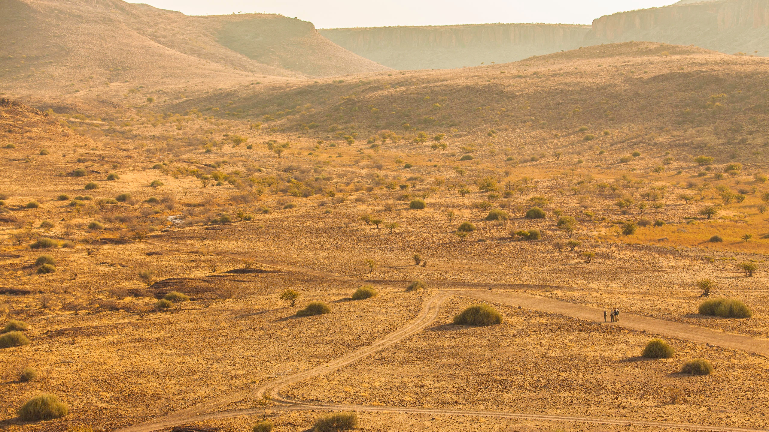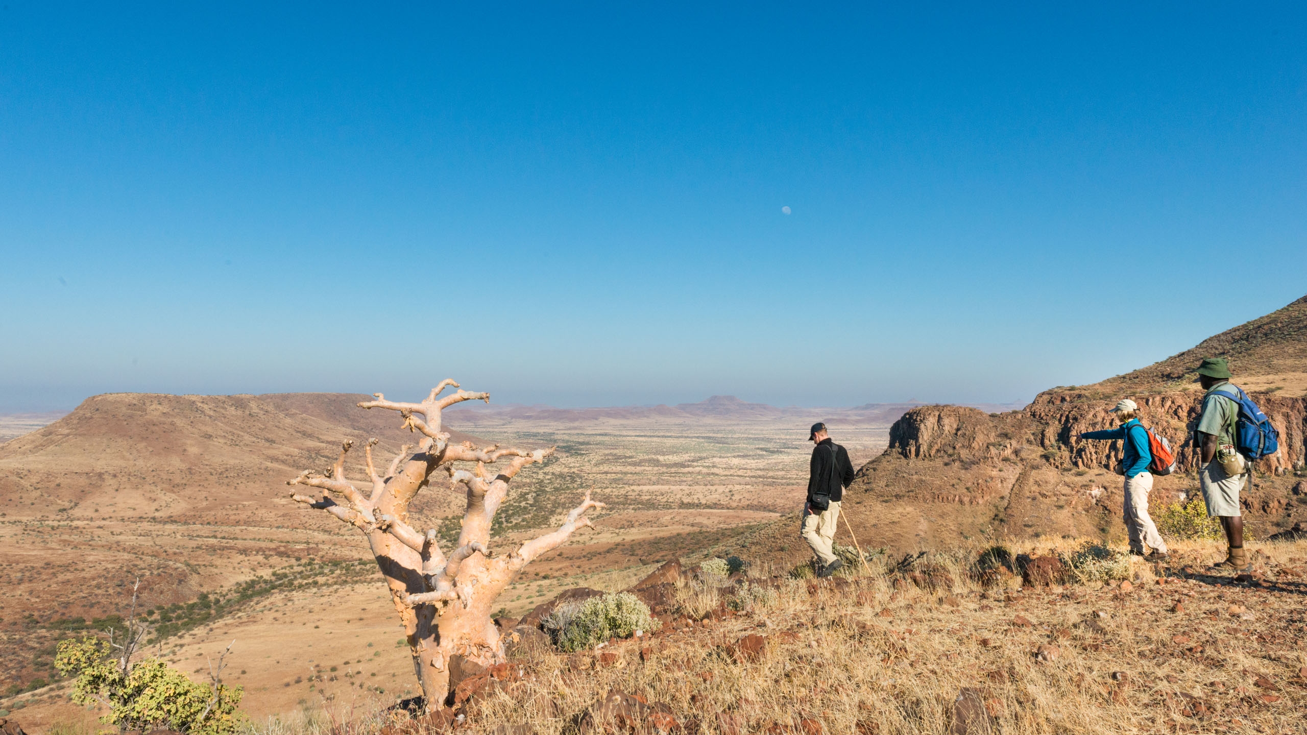 You’ll spend your days here exploring the area by foot and in open game drive vehicles accompanied by exceptionally knowledgeable guides. Keep your eyes peeled for desert elephant and black rhino, cheetah, lion, zebra, and herds of oryx.
