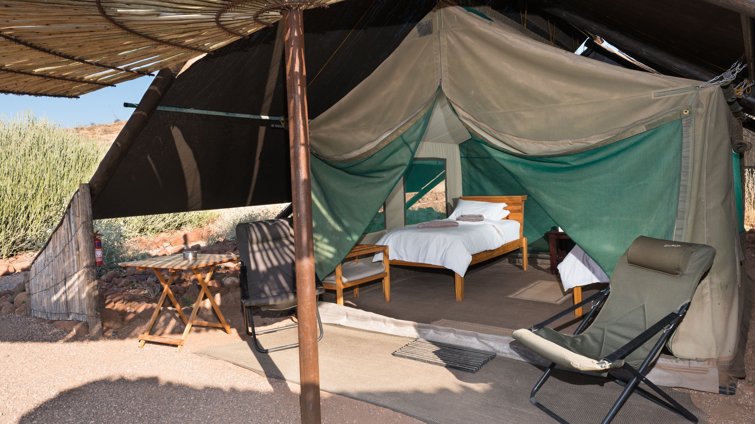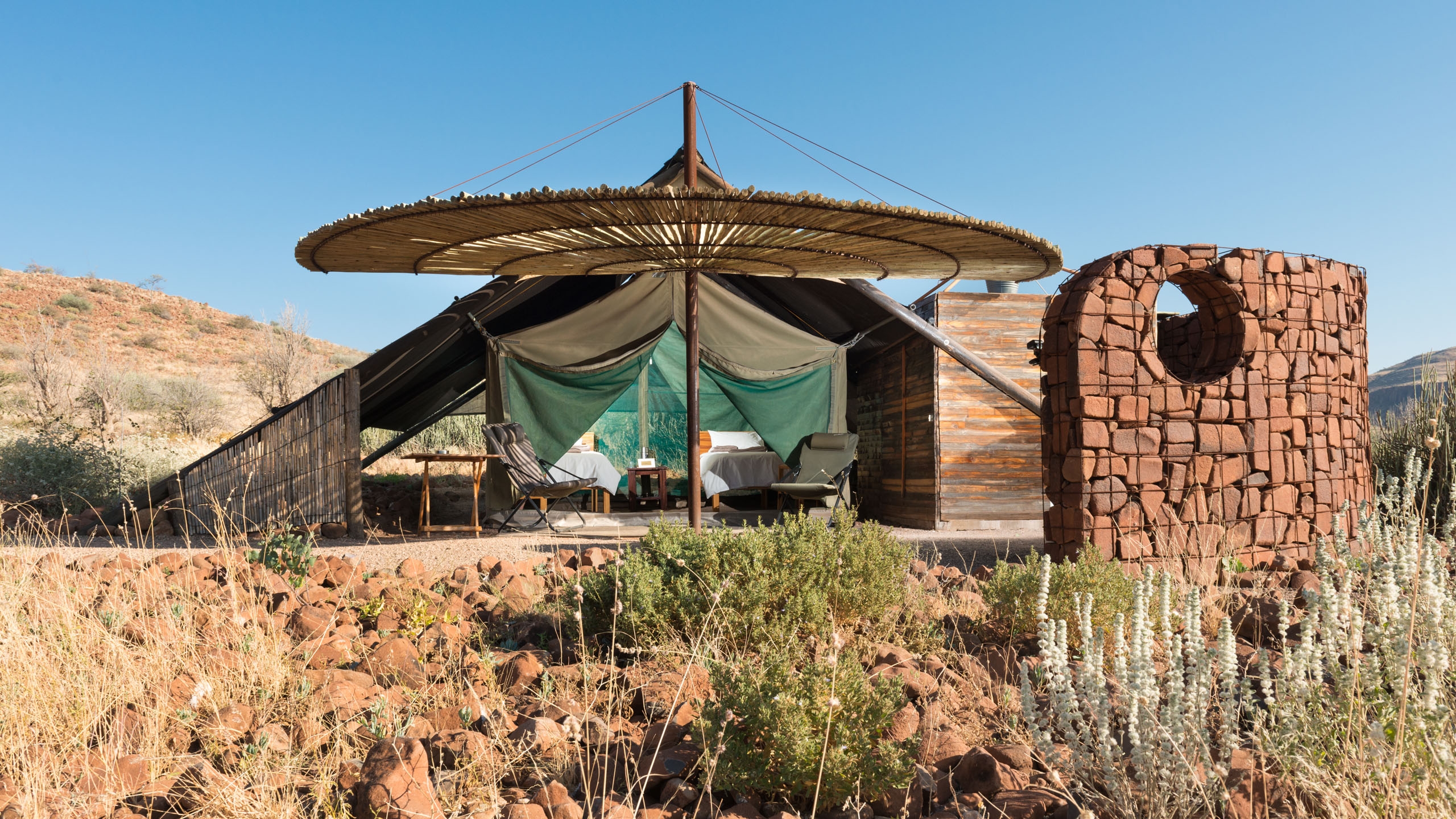 Boasting an incredible setting at the foothills of the immense Grootberg massif and amongst the ancient Etendeka lava flows of northern Damaraland, Etendeka Mountain Camp puts its emphasis on nature, and rightly so.