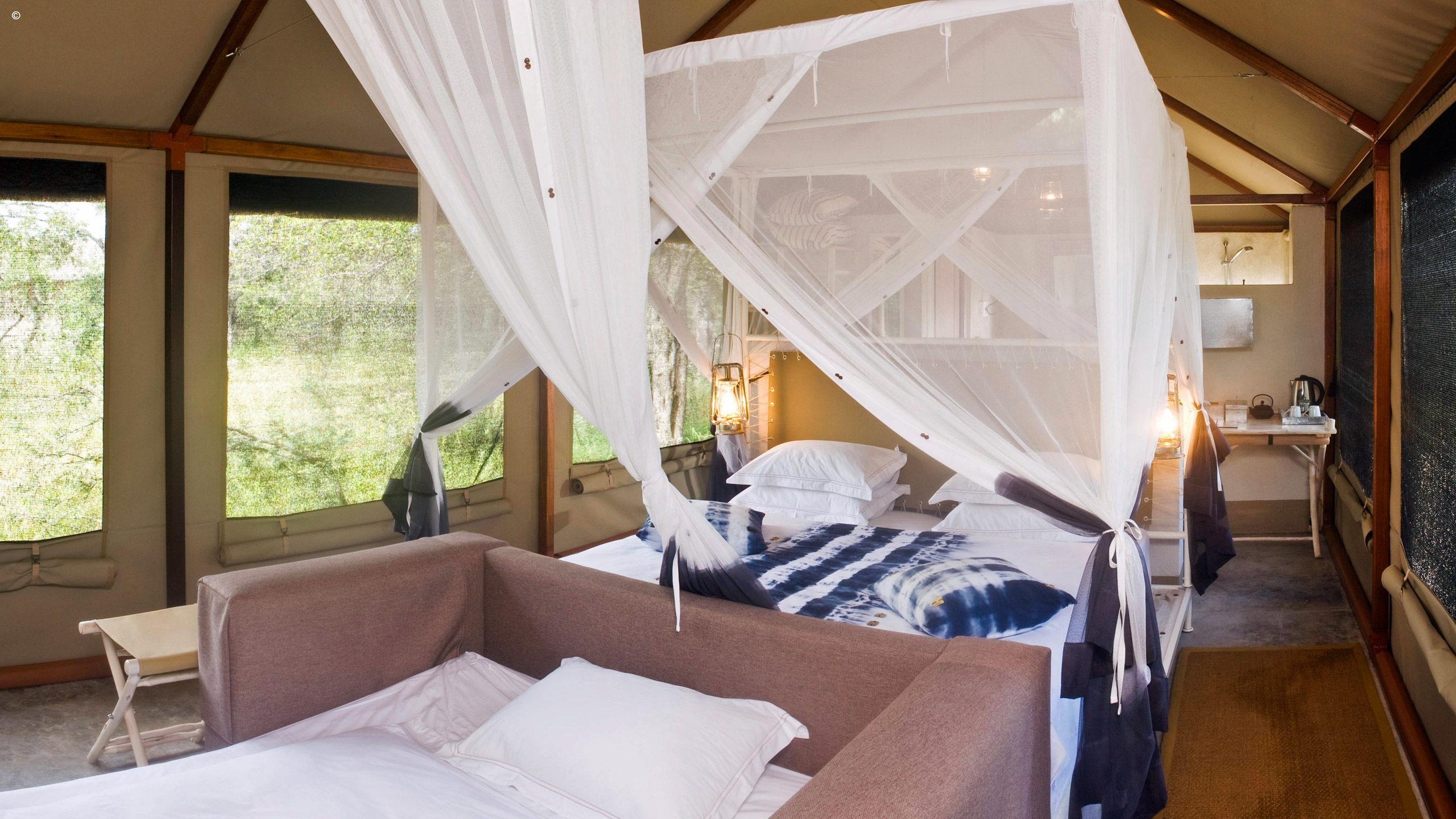 16 custom-made, en suite tents (max 32 guests § 8 children)