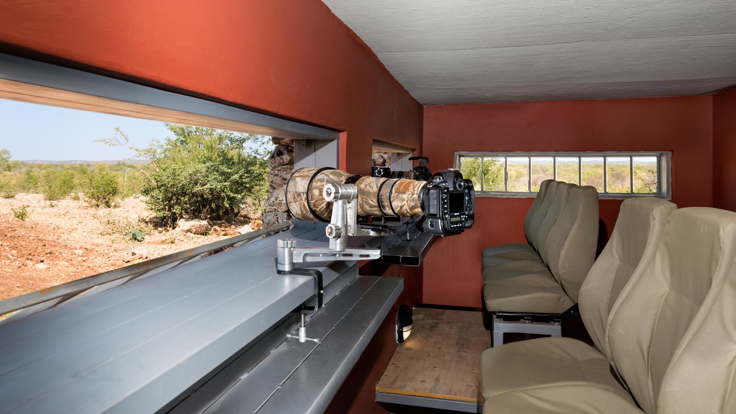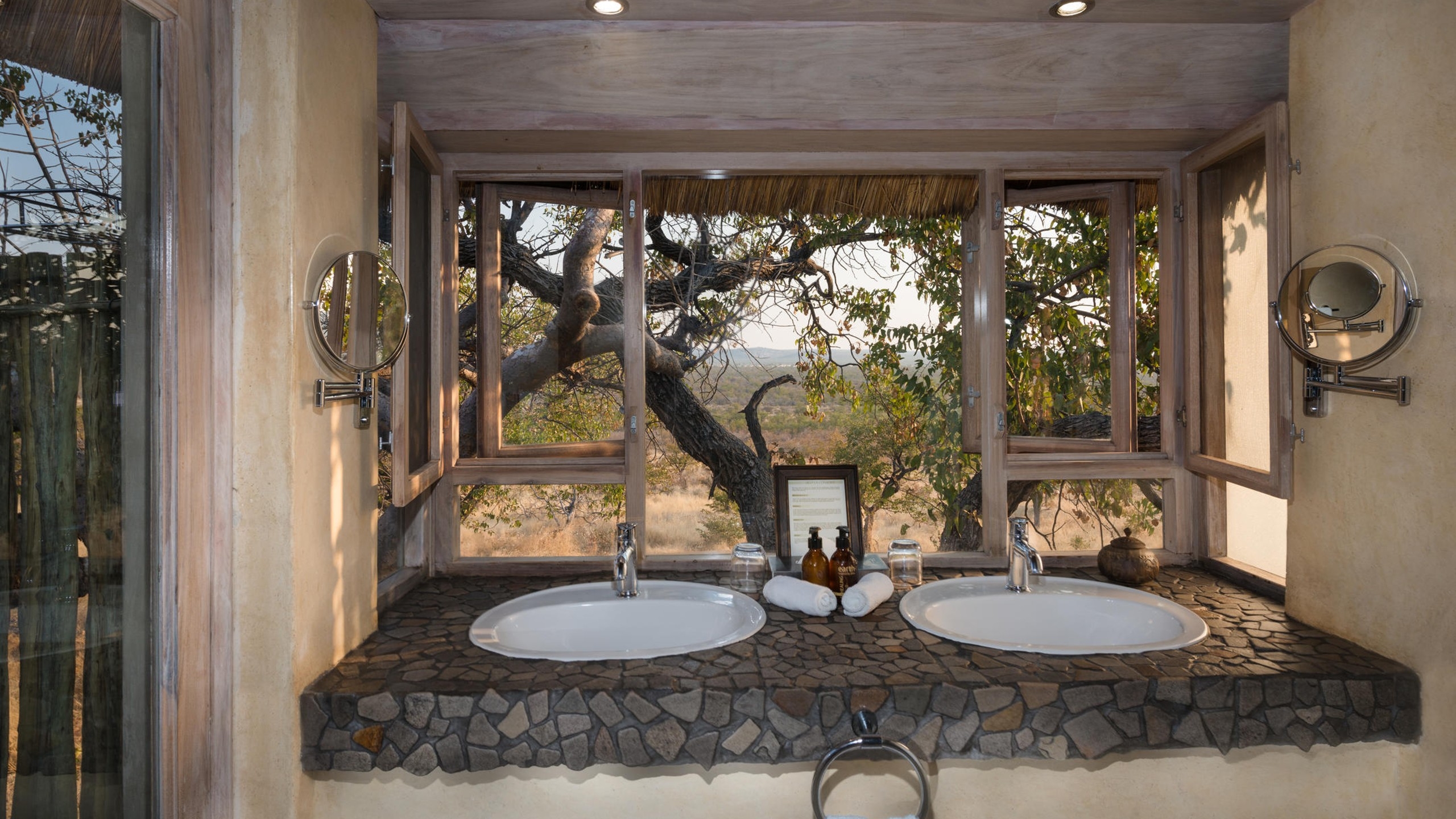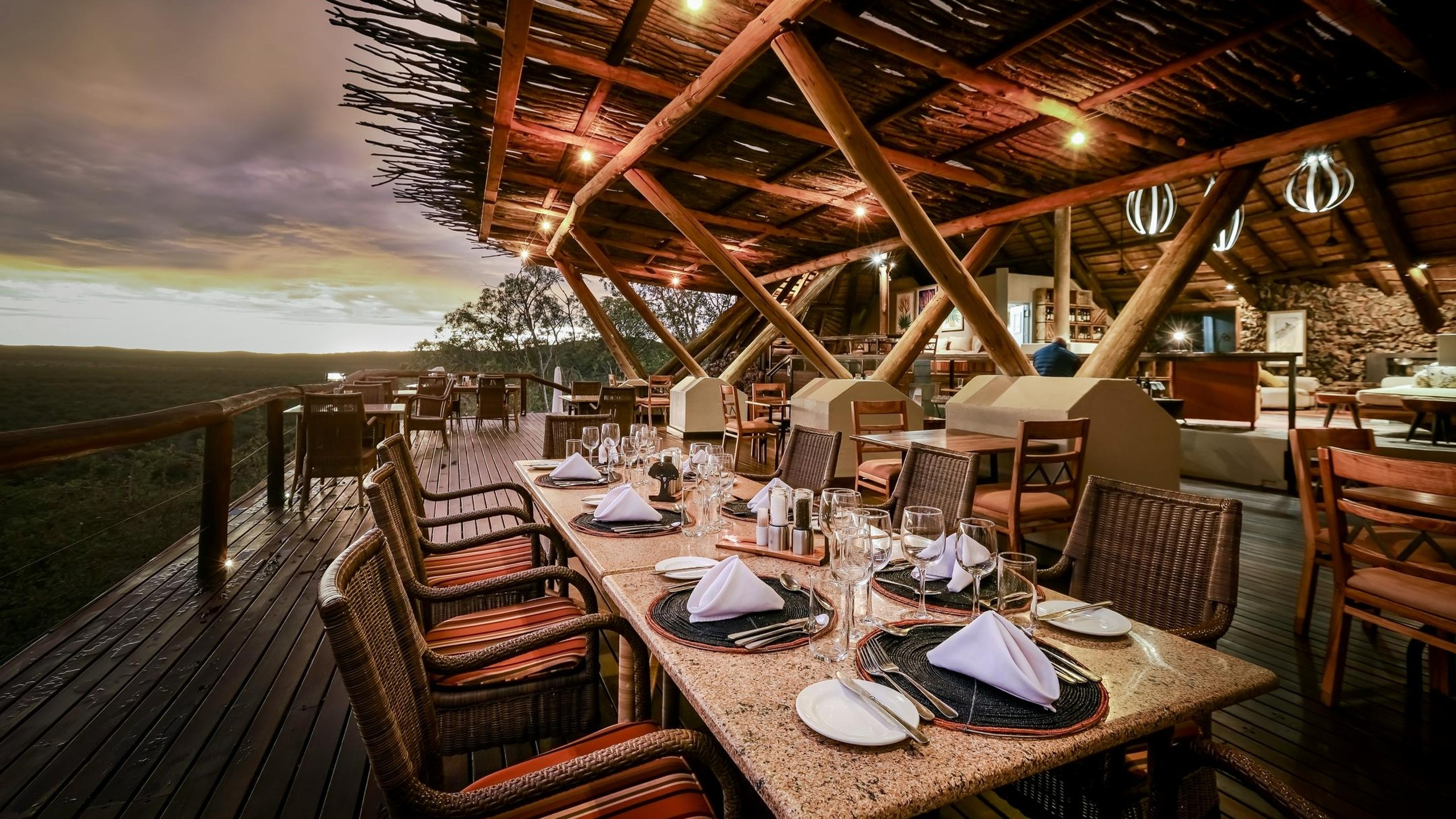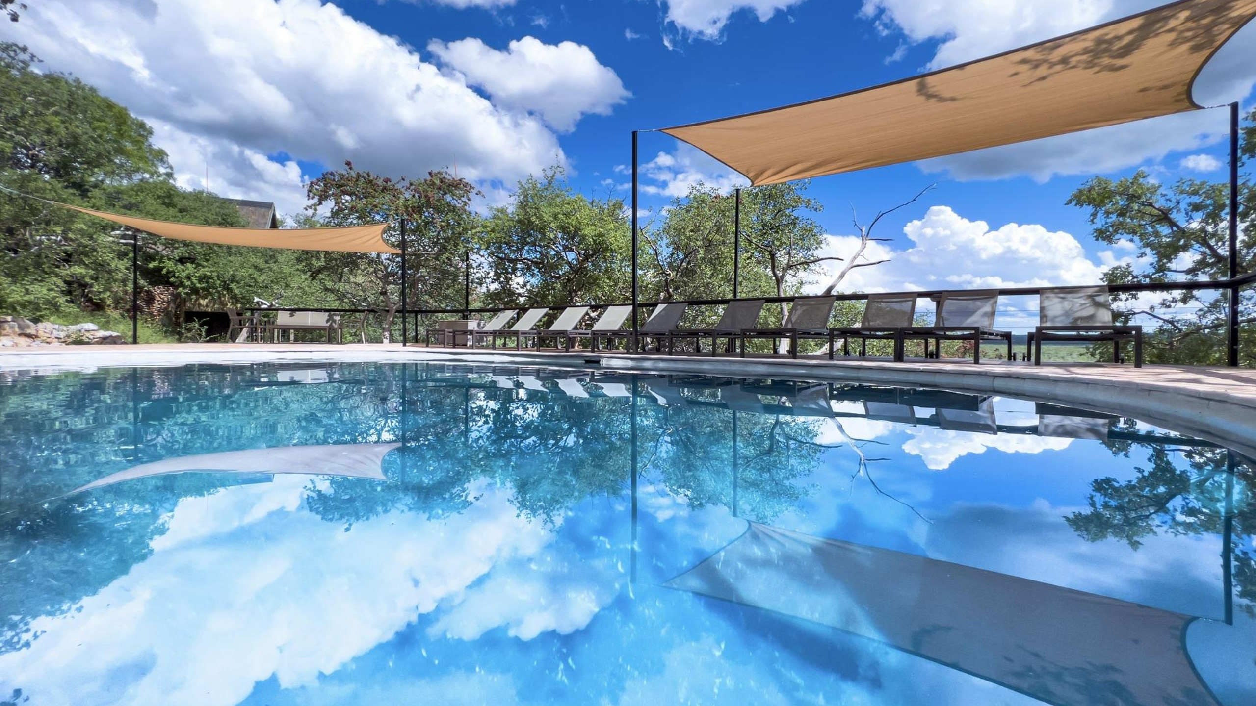 14 rock-and-thatch en-suite chalets, one of which is a family suite with two bedrooms. The main lounge, dining and pool area is situated on the foothills of the Ondundozonanandana Range, overlooking a floodlit waterhole and a vast beautiful plain. You’ll be accommodated in luxury air-conditioned thatched chalets with private veranda, all with en-suite bathrooms.
