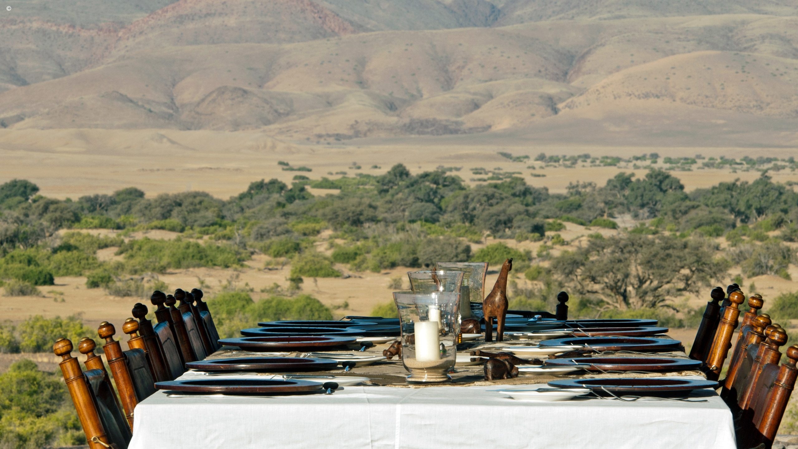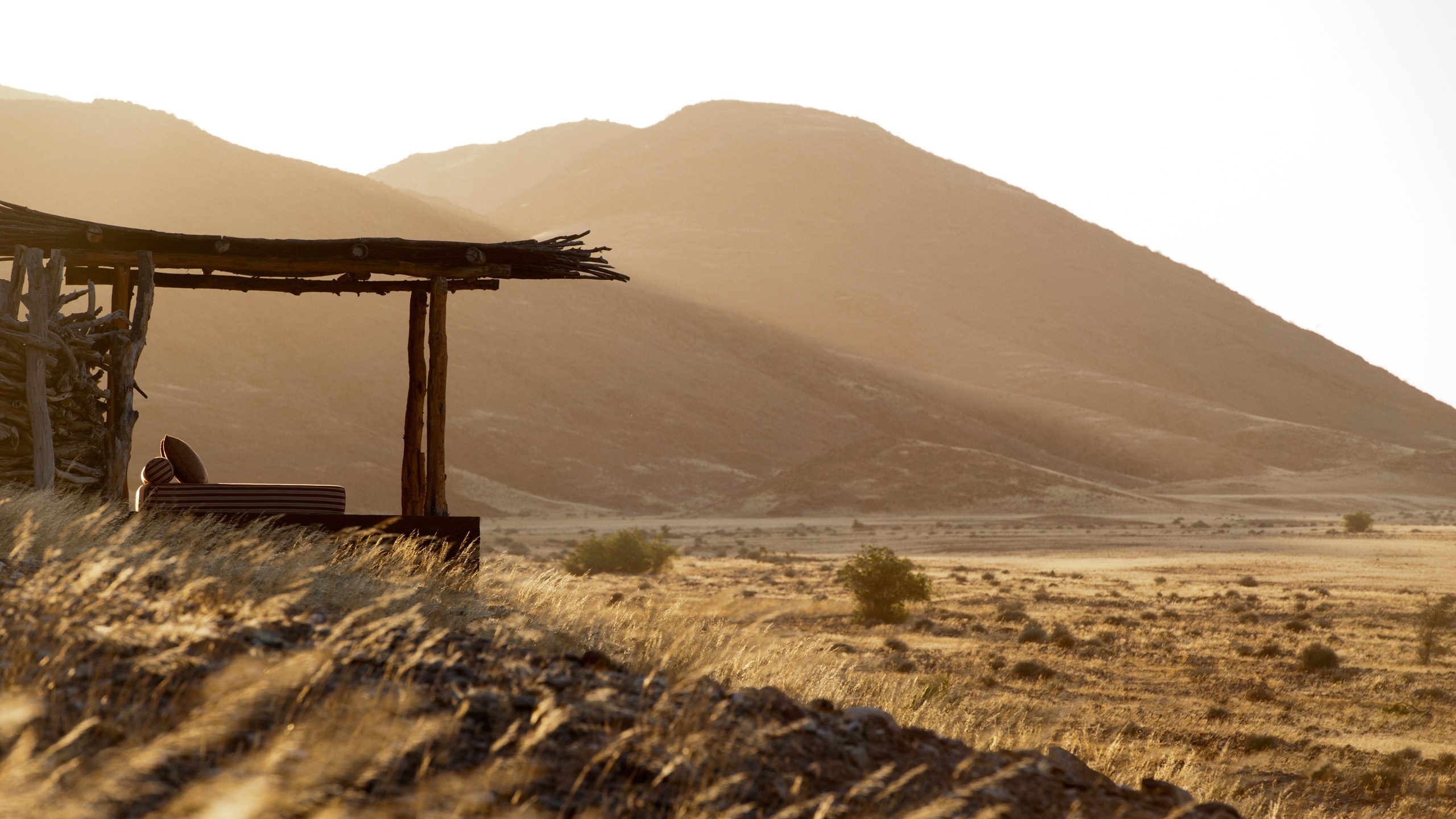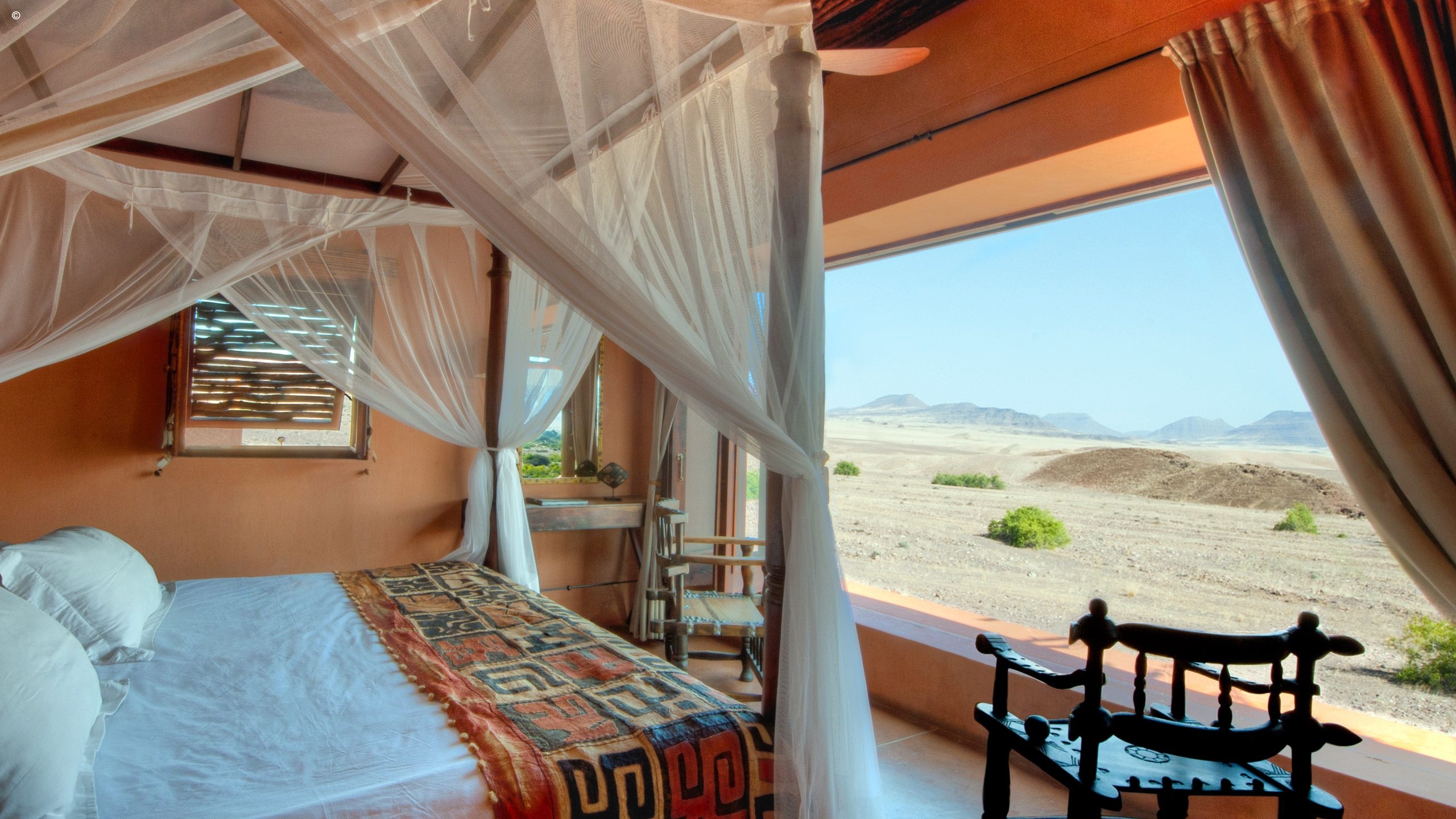 One of the most striking things about the Okahirongo Elephant Lodge are the views you get from every angle that you sit, stand or lie. Even from your bathtub you get scenes of the Hoarusib River below, the jagged outlines of the Purros Valley mountains in the distance sometimes accompanied by the remote roar of desert lion.