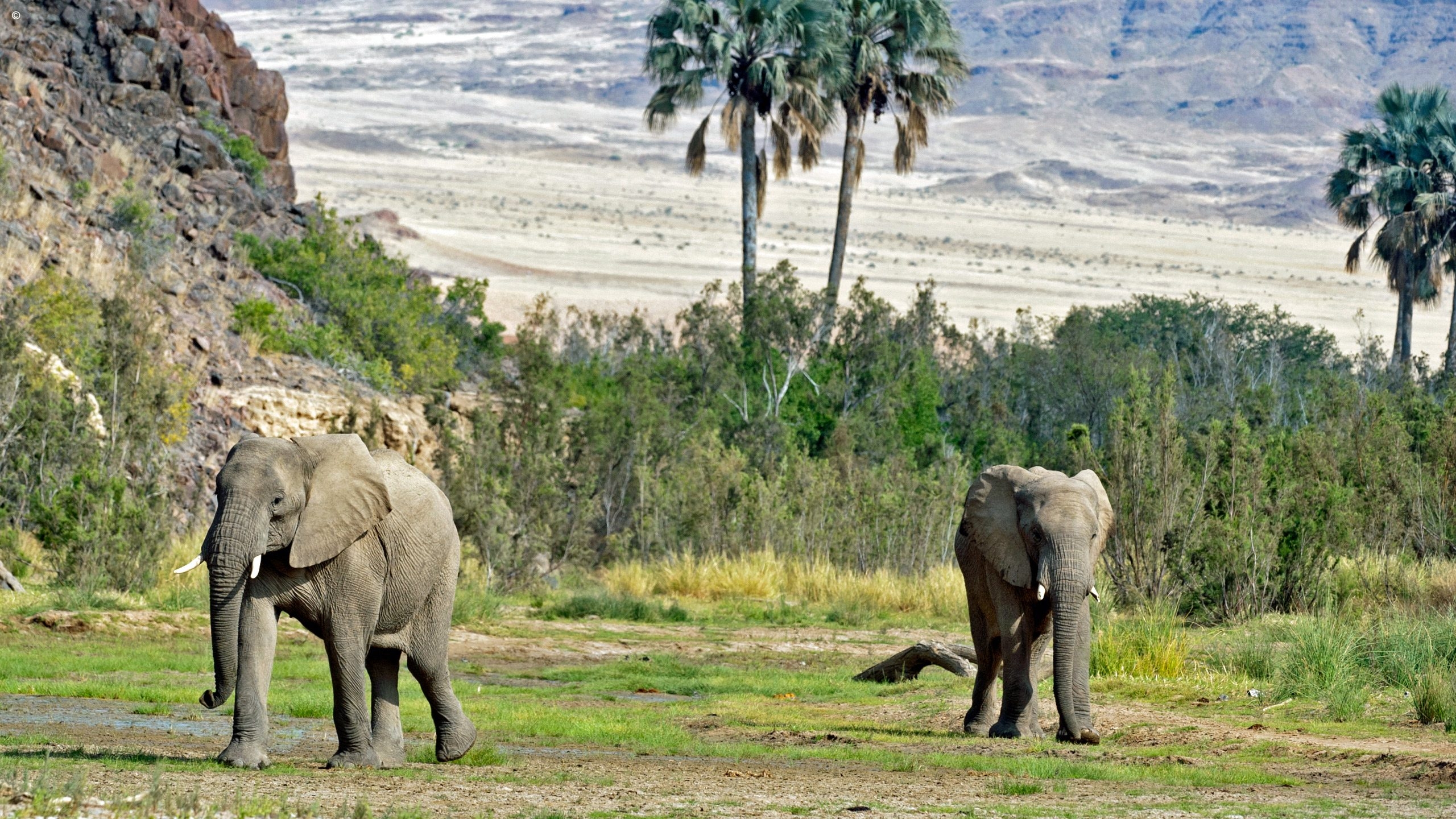 Morning and afternoon game drives to track the rare Desert adapted Elephants, Black Rhino and Lions as well various antelopes, giraffes, ostriches, Hartman Zebras etc