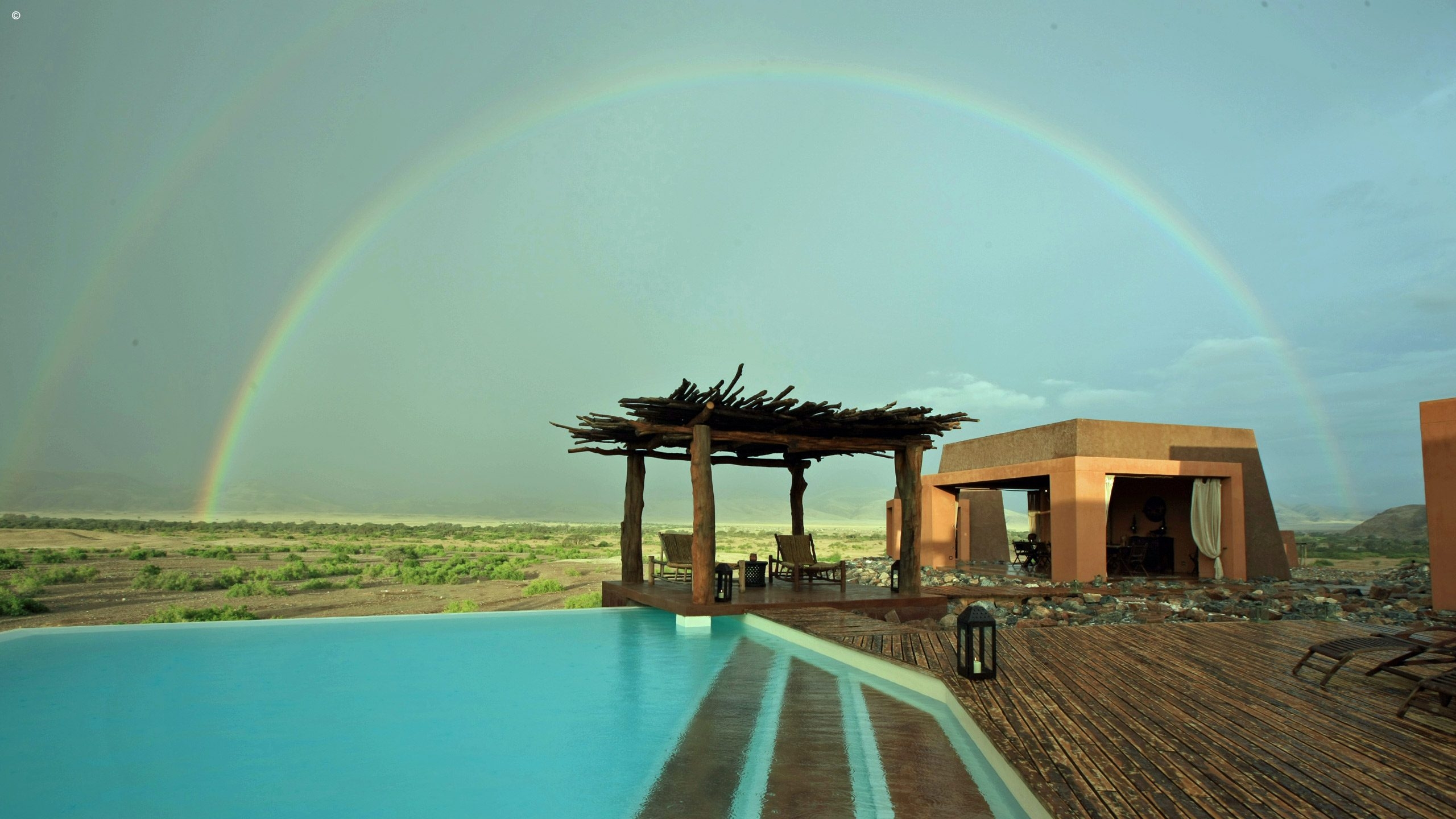 Ethnically-styled, its terracotta buildings blend in well with the valley’s copper backdrop and the refreshing turquoise infinity pool is the only obvious sign of civilisation in a large radius. The feeling of being completely in the wild is tangible to say the least. Each of the rooms fall into line with the earthy décor of the entire lodge, with very comfortable beds, an en suite bathroom with a bath tub and indoor and outdoor showers.