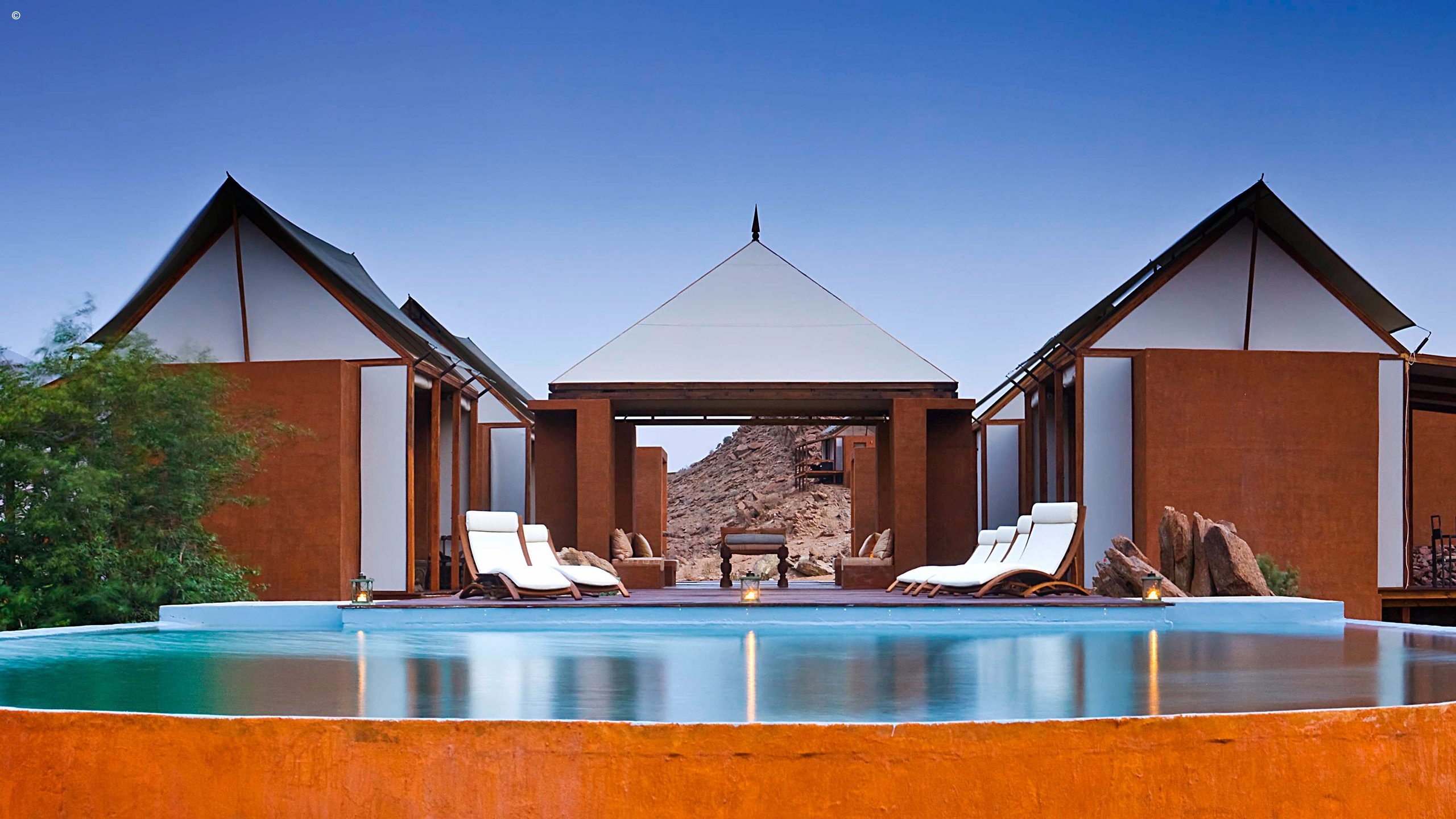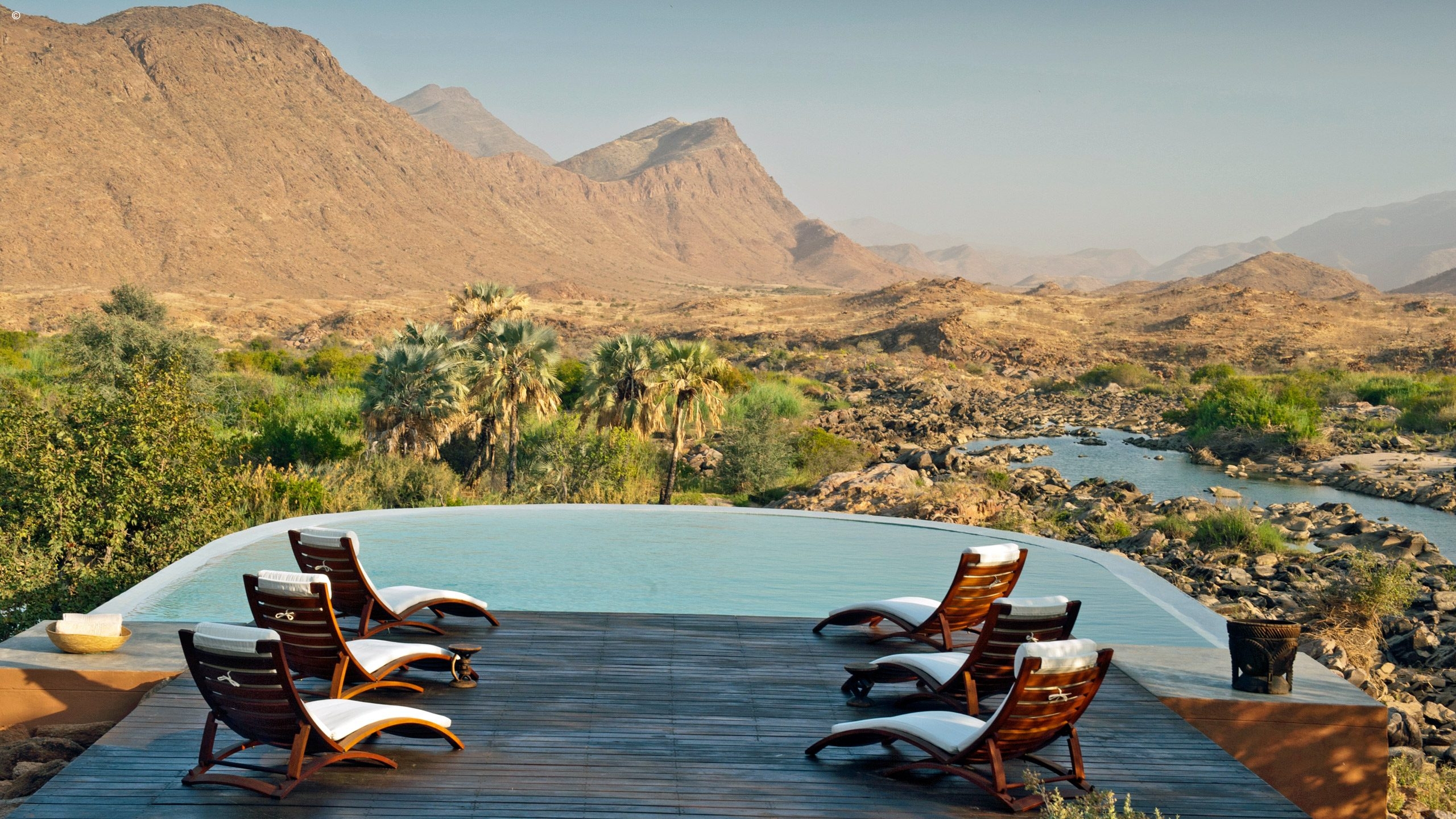 Scaling a ridge in the Marienfluss Valley and its central lodge built above the rapids of the Kunene, this is wild luxury at its best. The views are staggering with the colours constantly shifting into new ones depending on the time of day. Seven standalone wood and canvas rooms envelop you in the arid beauty at the same time delivering fine linen, a private terrace, indoor and outdoor showers, and a naturally stylish and eco-friendly ambience.