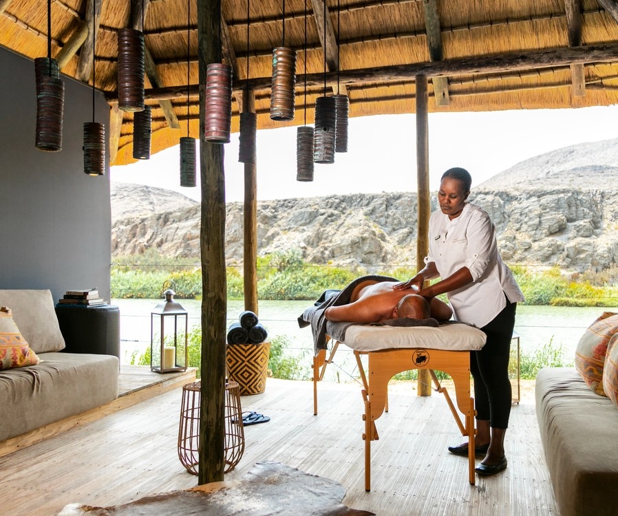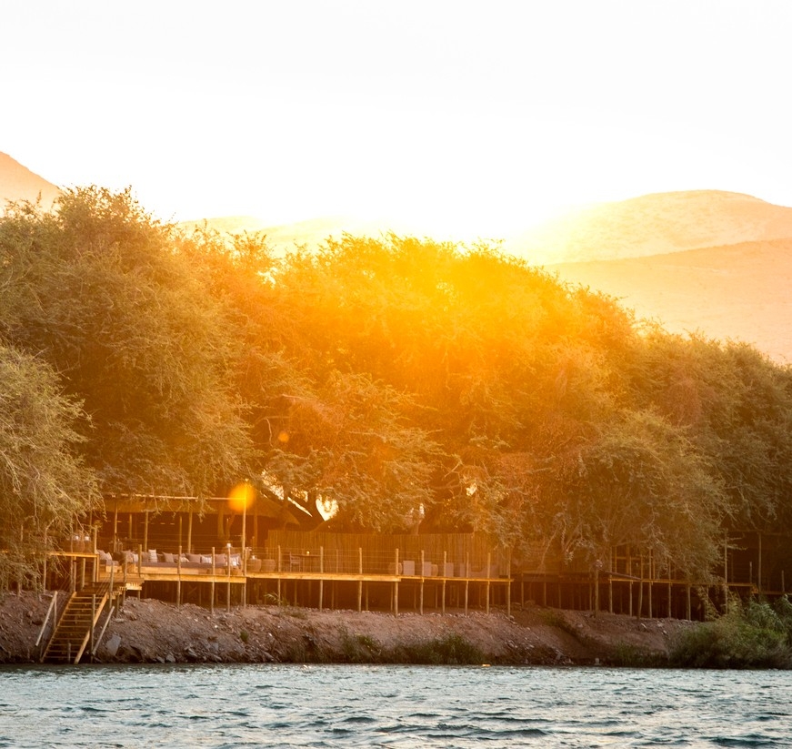 Wilderness Serra Cafema is an intimate, peaceful camp with a unique mix of rustic and luxury elements nestled amongst the shady Albida trees on the banks of the Kunene. Rapids just below camp provide a calming ambiance with guests often lulled into dreamland by the gurgling waters after a day exploring one of the driest, starkly beautiful regions in the world.