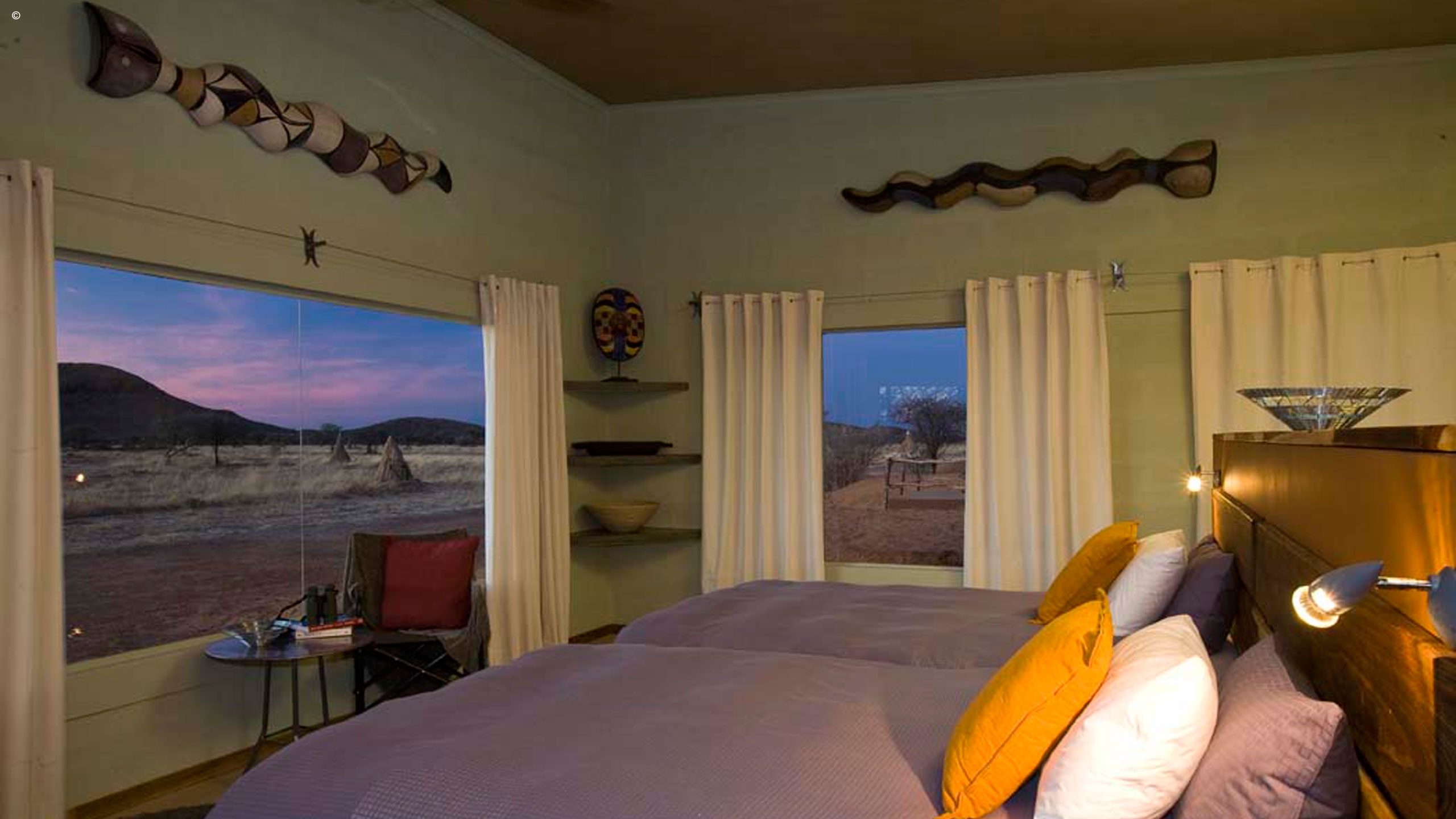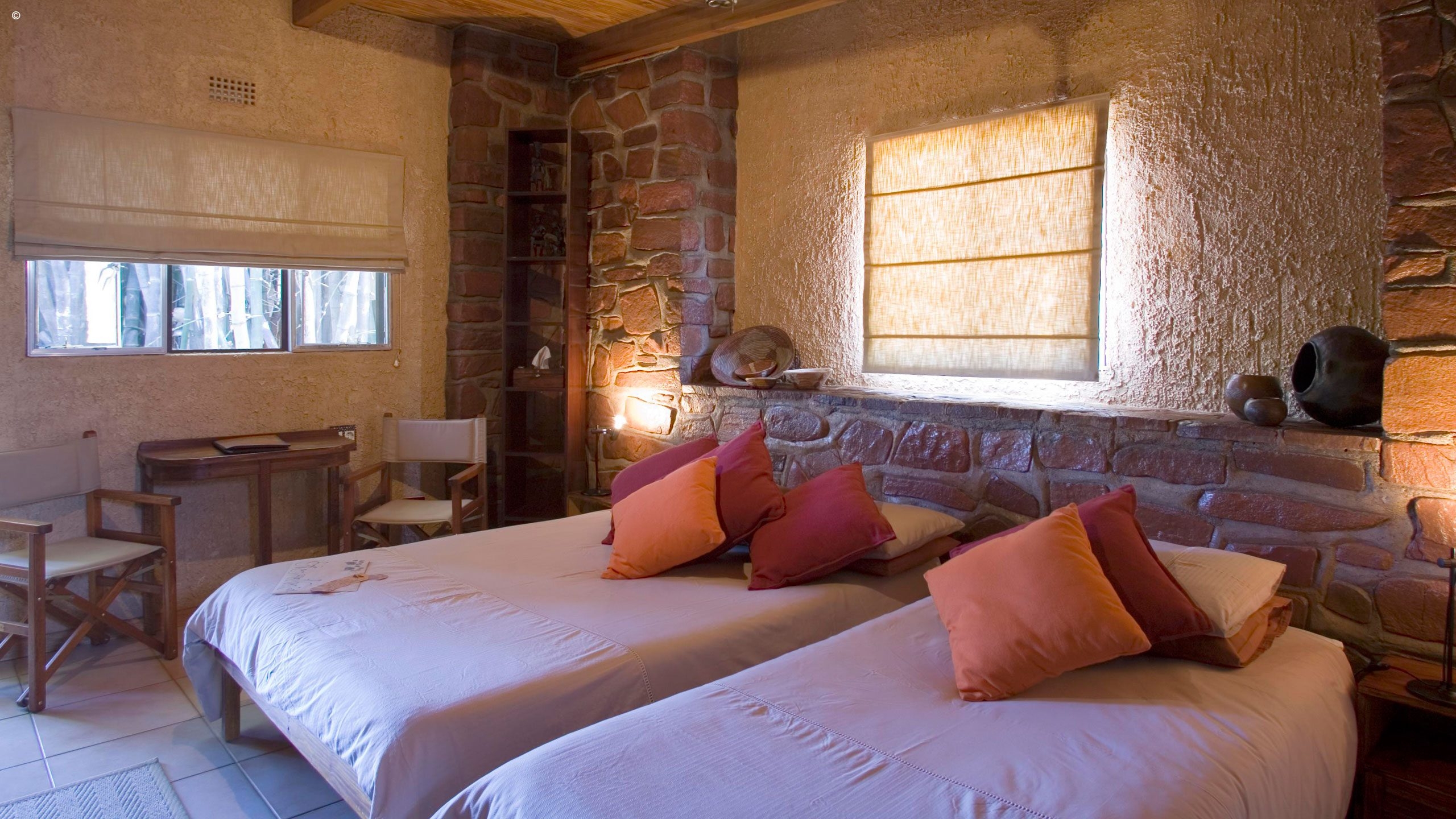 Once an original family farmhouse, Okonjima Plains Camp is now a thatched lodge with an informal atmosphere and elegant rooms that look out to sprawling plain views.
