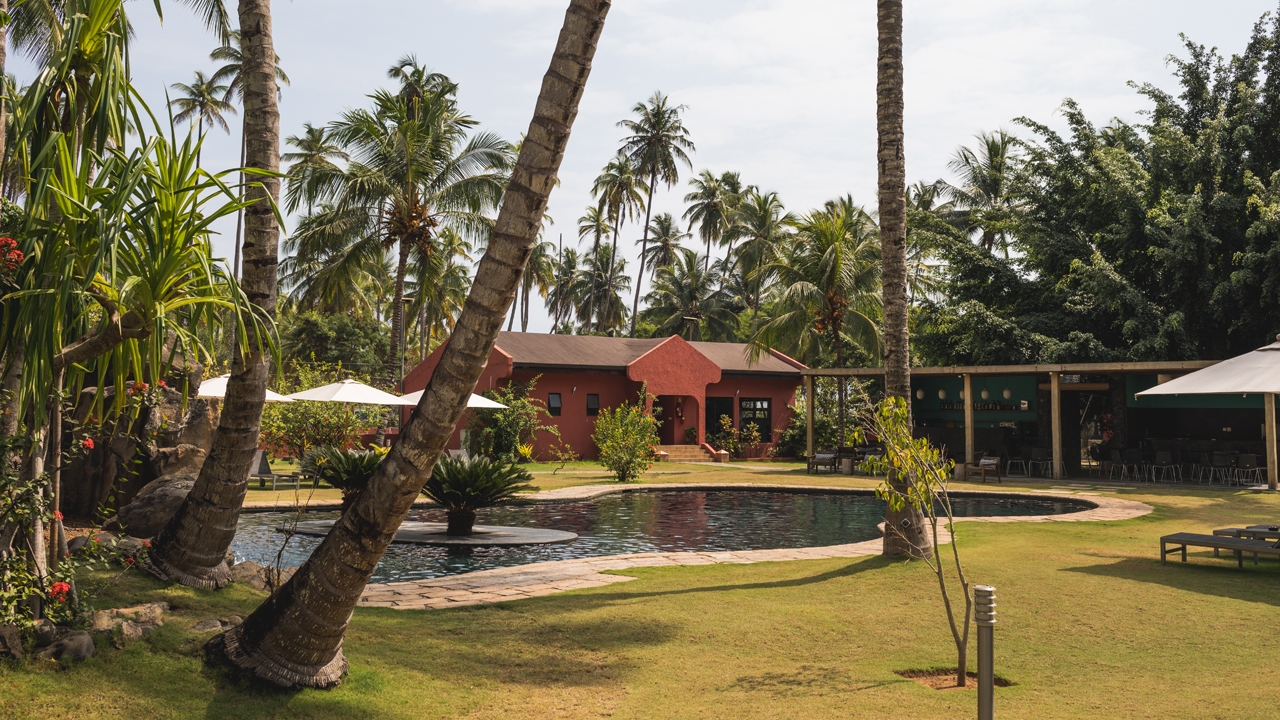 Enjoying a beautiful position just back from Praia Emilia on São Tomé’s north east coast, and set within palm-filled grounds, Omali Lodge promises a peaceful and relaxing stay on this exotic African island. The atmosphere enjoyed throughout the hotel is one of a paradise escape, with the pristine grounds, central swimming pool and nearby sounds of the waves contributing to a sense of serenity that is an essential ingredient of any island getaway.