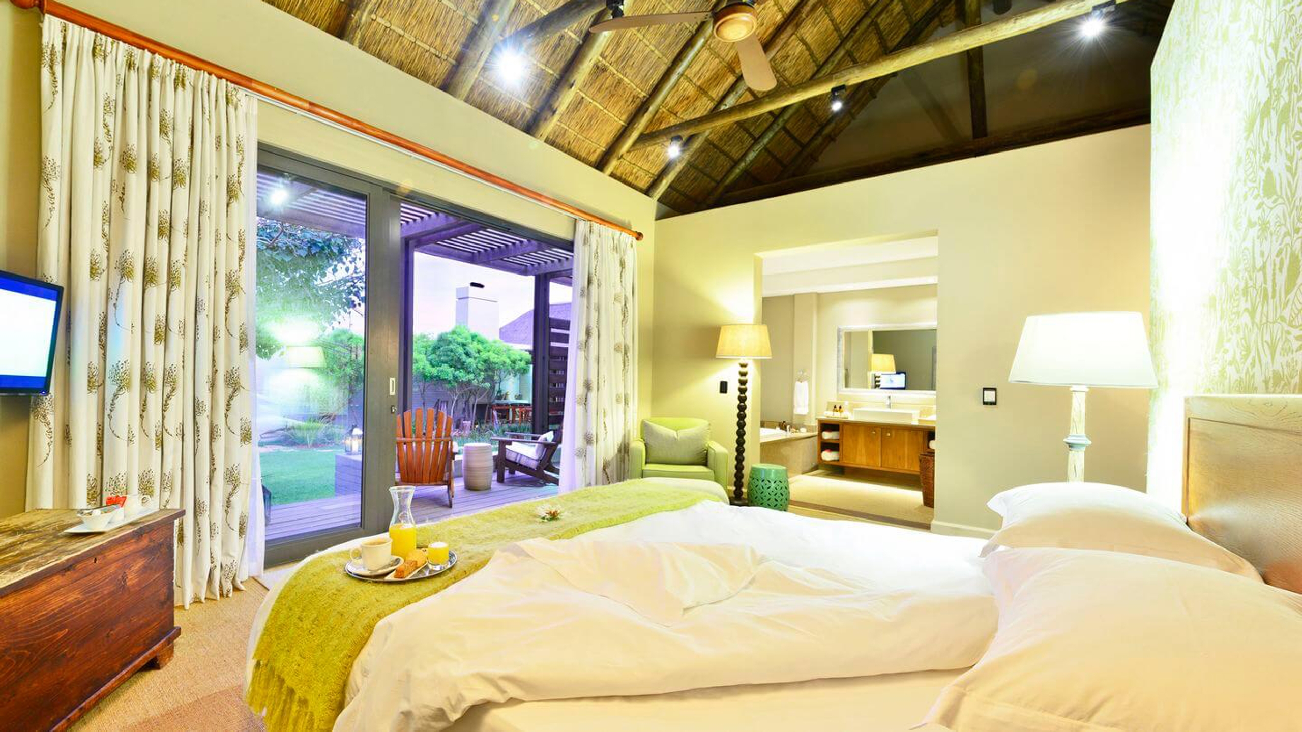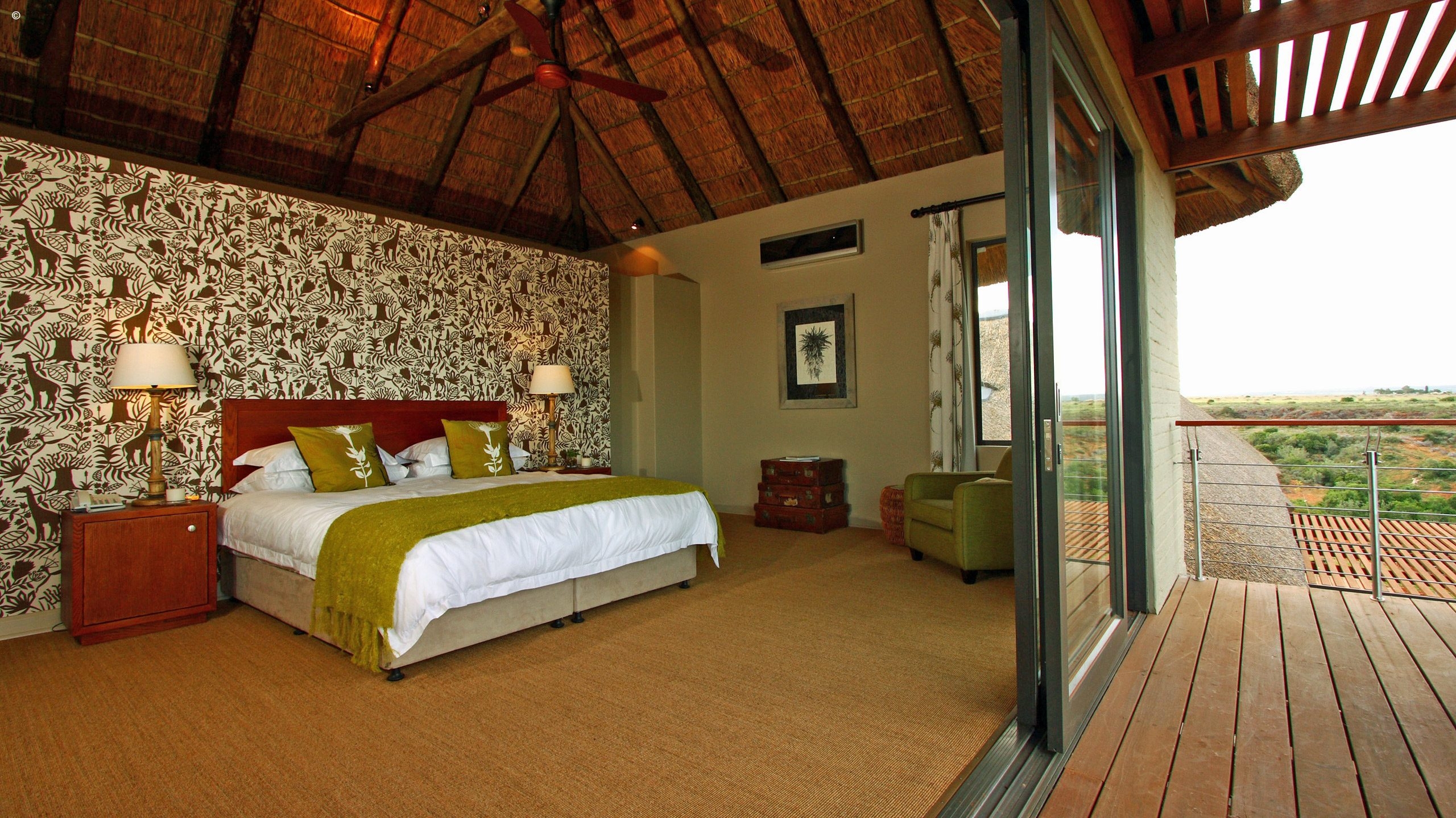 The lodge’s five rooms are light and welcoming. Large windows and balconies bring the bush closer, while some rooms lead onto a quiet courtyard.
