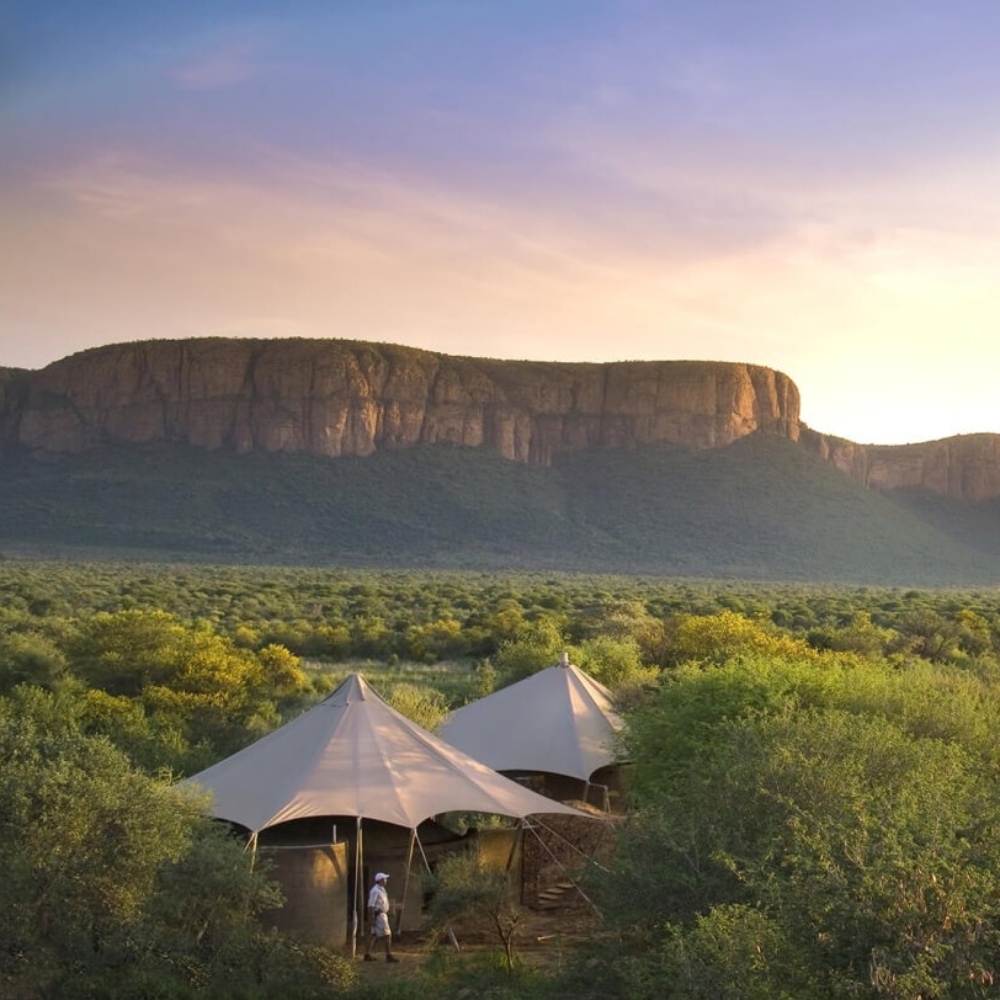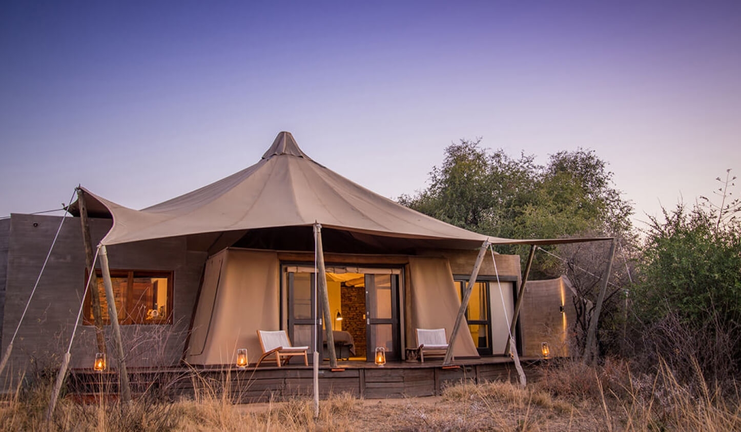 The 15 luxurious canvas and stone tented suites are private sanctuaries, reflecting the natural surroundings with a contemporary twist, with bathrooms that have deep stone carved bath tubs as well as indoor and outdoor showers.