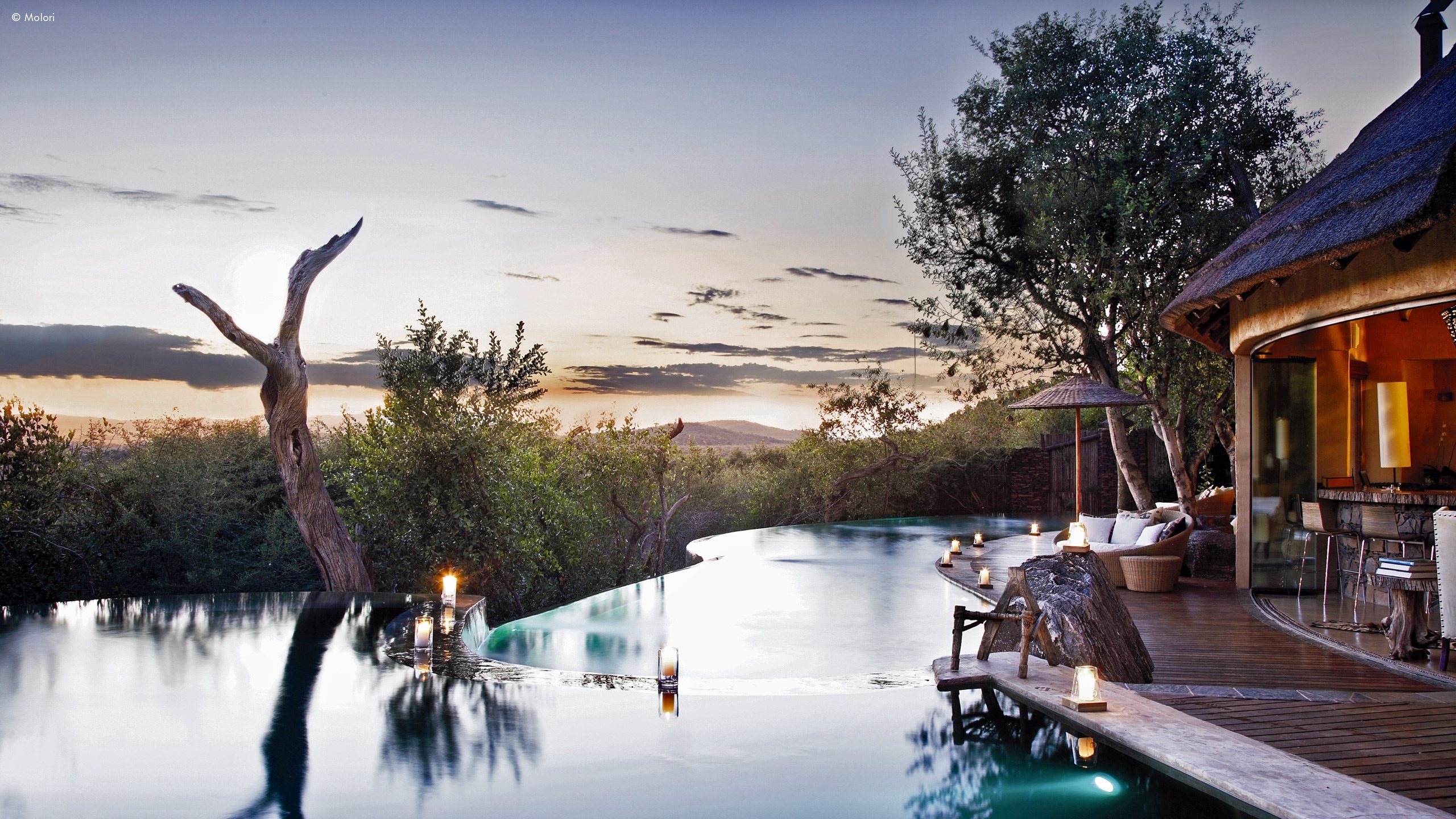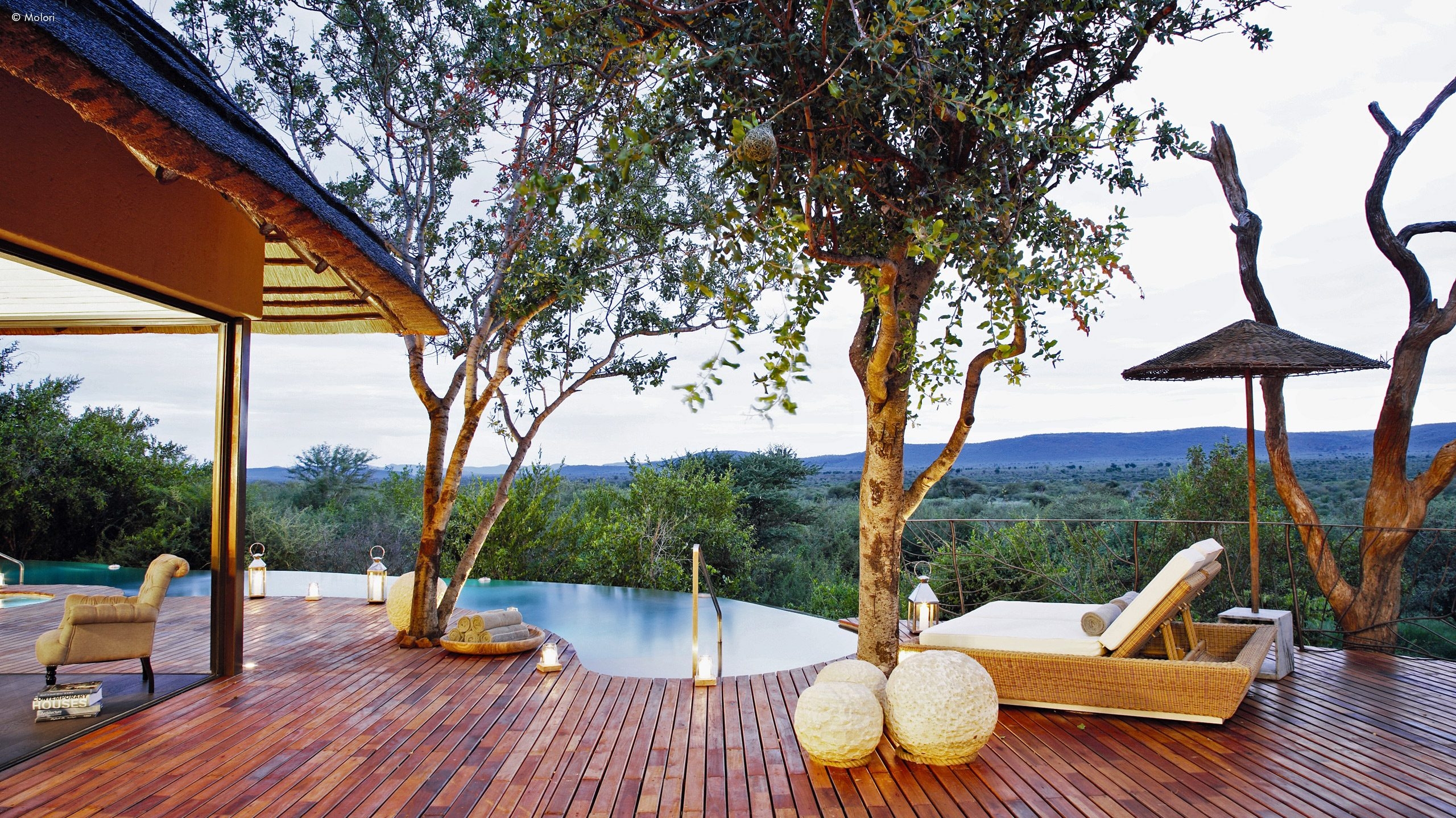 Molori’s five vast suites are distanced for more privacy and designed to the starry heights of infinite, open-sided African chic.