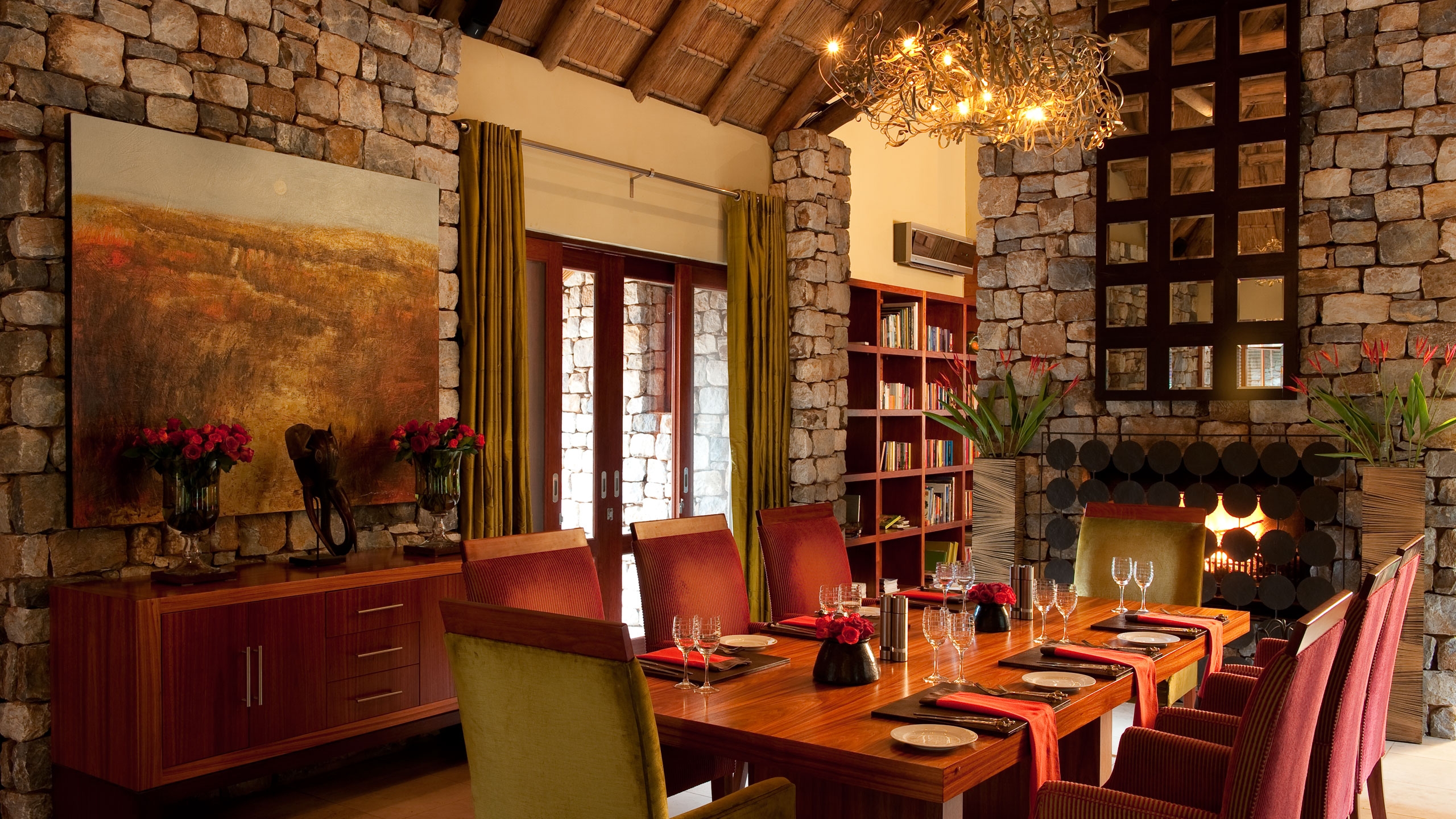The Farmhouse, located a ten minute walk from the other two properties, accommodates groups of four to ten guests and is ideal for multi-generational travel or milestone celebrations. The Farmhouse features a warm, neutral palette and bespoke Afro-chic accents, making it a popular choice for a South African family safari. All five uniquely decorated bedrooms are connected to the main area by a covered walkway.