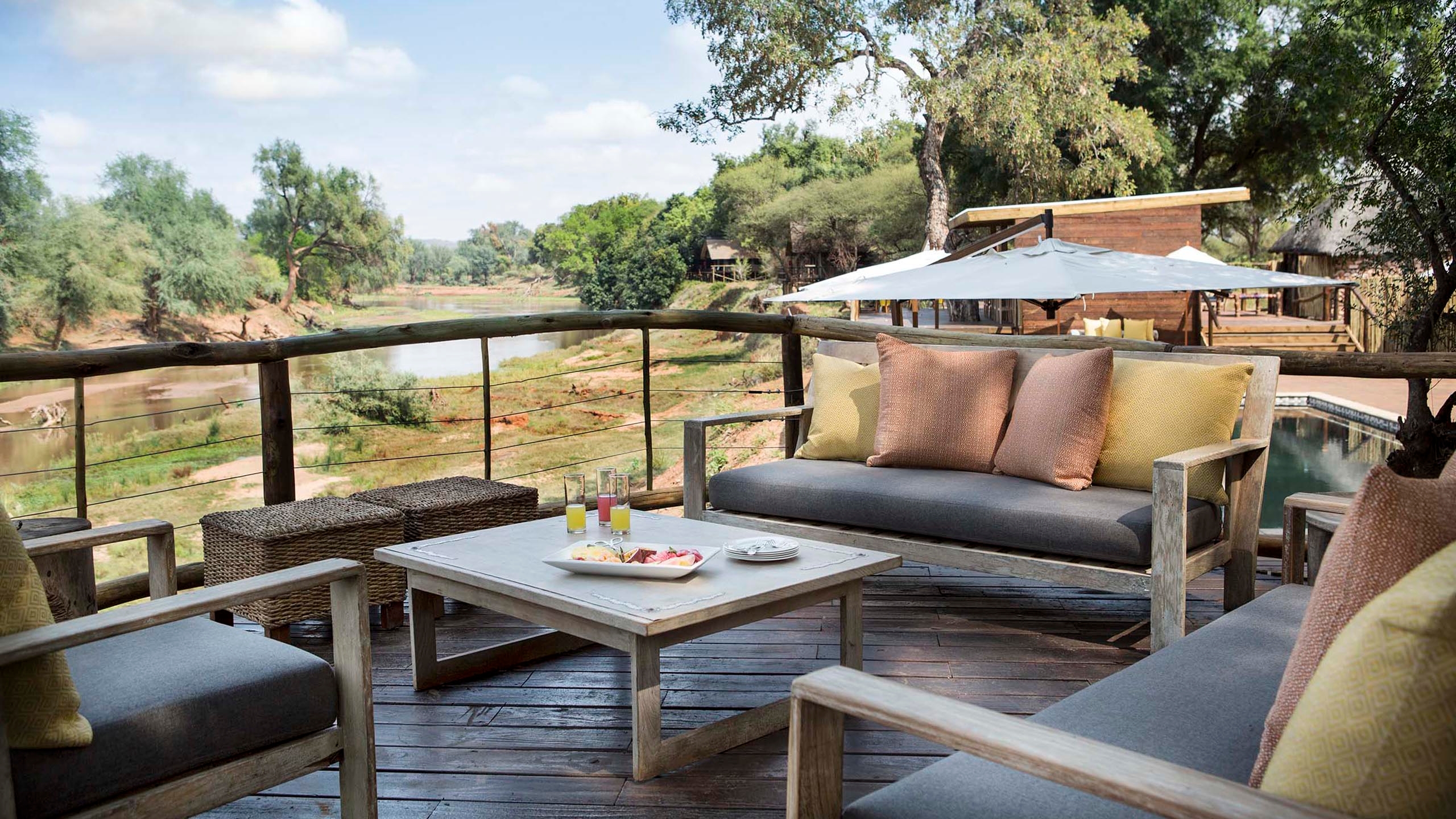 All the rooms offer gorgeous views over the perennial Luvuvhu River, a vital source of water during the dry winter months, a vista shared with the dining area, swimming pool and bar.