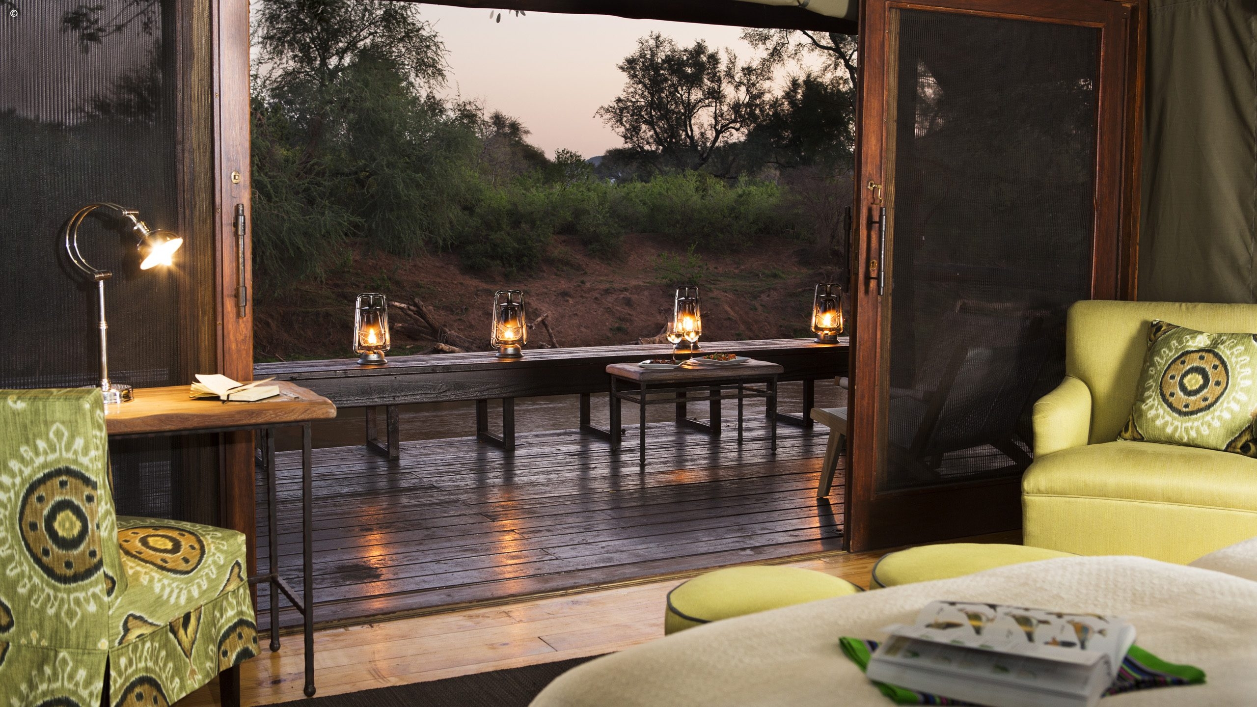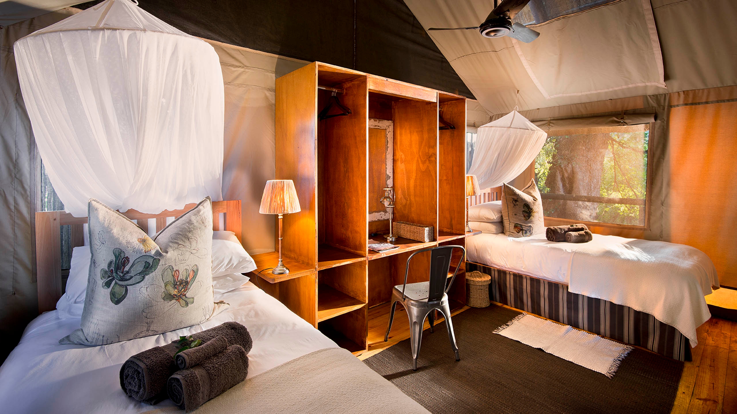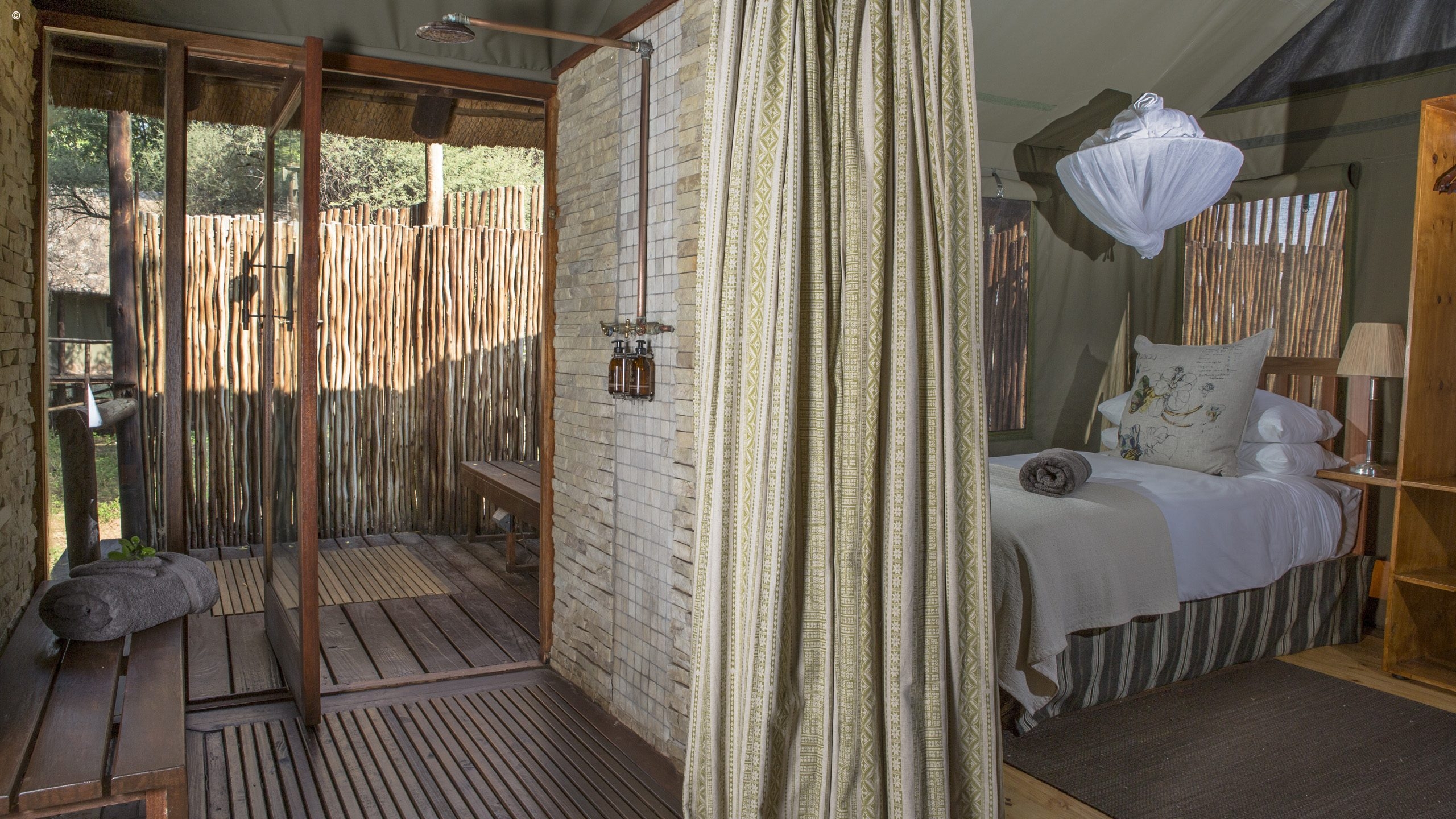 This stylish camp has 19 luxury tents with en-suite bathrooms, expansive viewing decks, vast beds and outdoor showers. Seven are family tents with two additional single beds to the back of the tent.