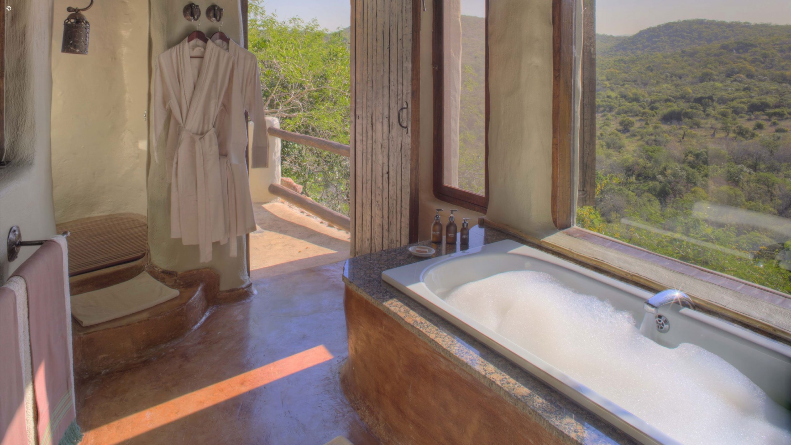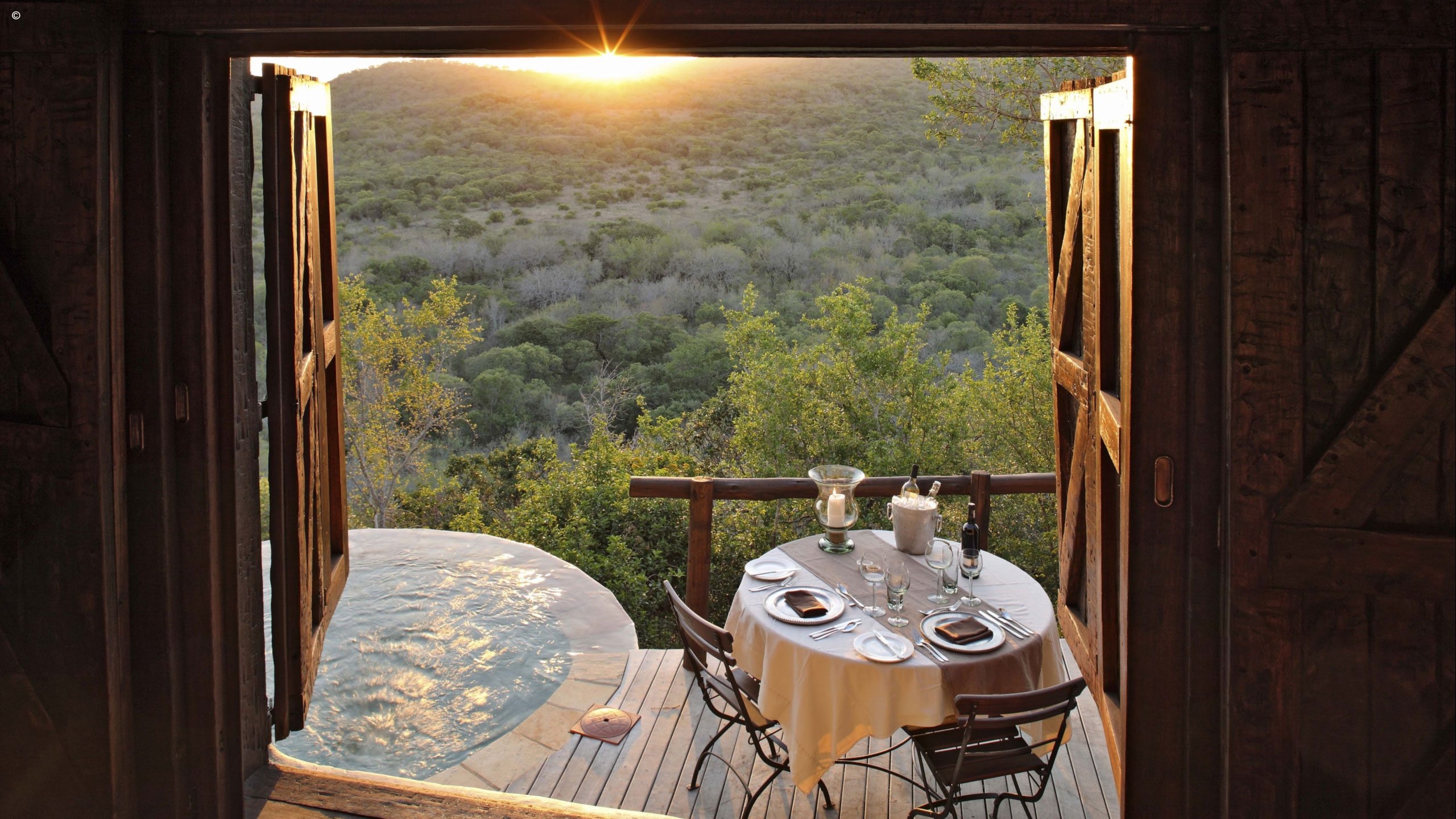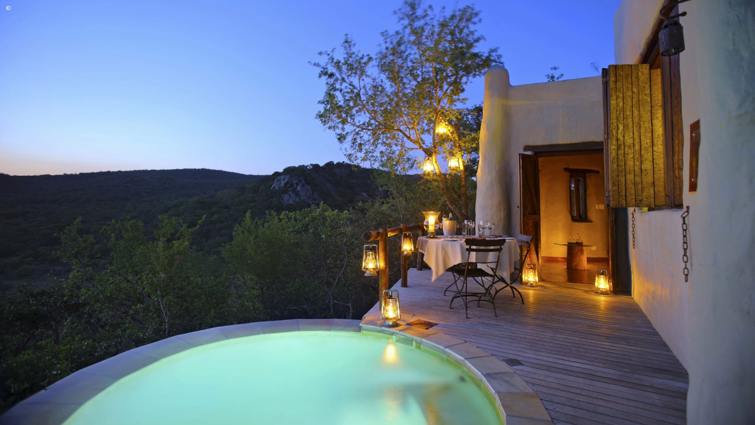 Its six suites seem suspended over the wild valley below, and three of the rooms offer one of the most scenic shower experiences you’ll ever have, allowing you to gaze into the horizon or under the ever-bright African stars. Each en-suite private bungalow has been designed with solid wooden shutters opening out onto your own private viewing deck and plunge pool.