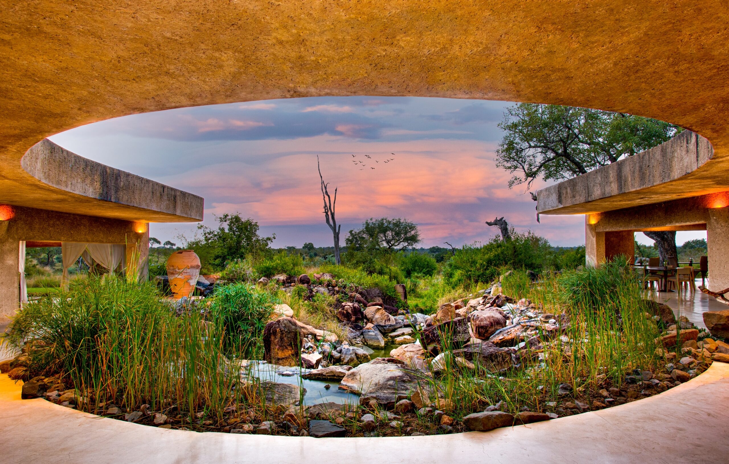 Located within the Sabi Sabi Reserve, the Earth Lodge stands as a beacon of environmentally sensitive luxury, seamlessly blending cutting-edge design with the rugged beauty of the African bush. This avant-garde lodge, with its innovative bunker-style architecture, mimics the natural folds of the landscape, creating a harmonious and serene retreat that feels both sophisticated and intimately connected to its surroundings.