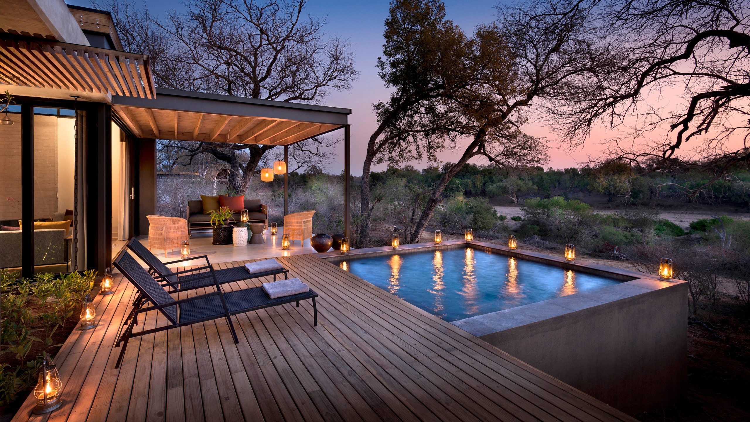 Located along the banks of the Sabie River inside the Lion Sands Reserve, Ivory Lodge has six large ultra-luxurious suites spaced out from one another and at 165m2 each enjoy their own courtyard, lounge with fireplace, viewing deck and plunge pool.