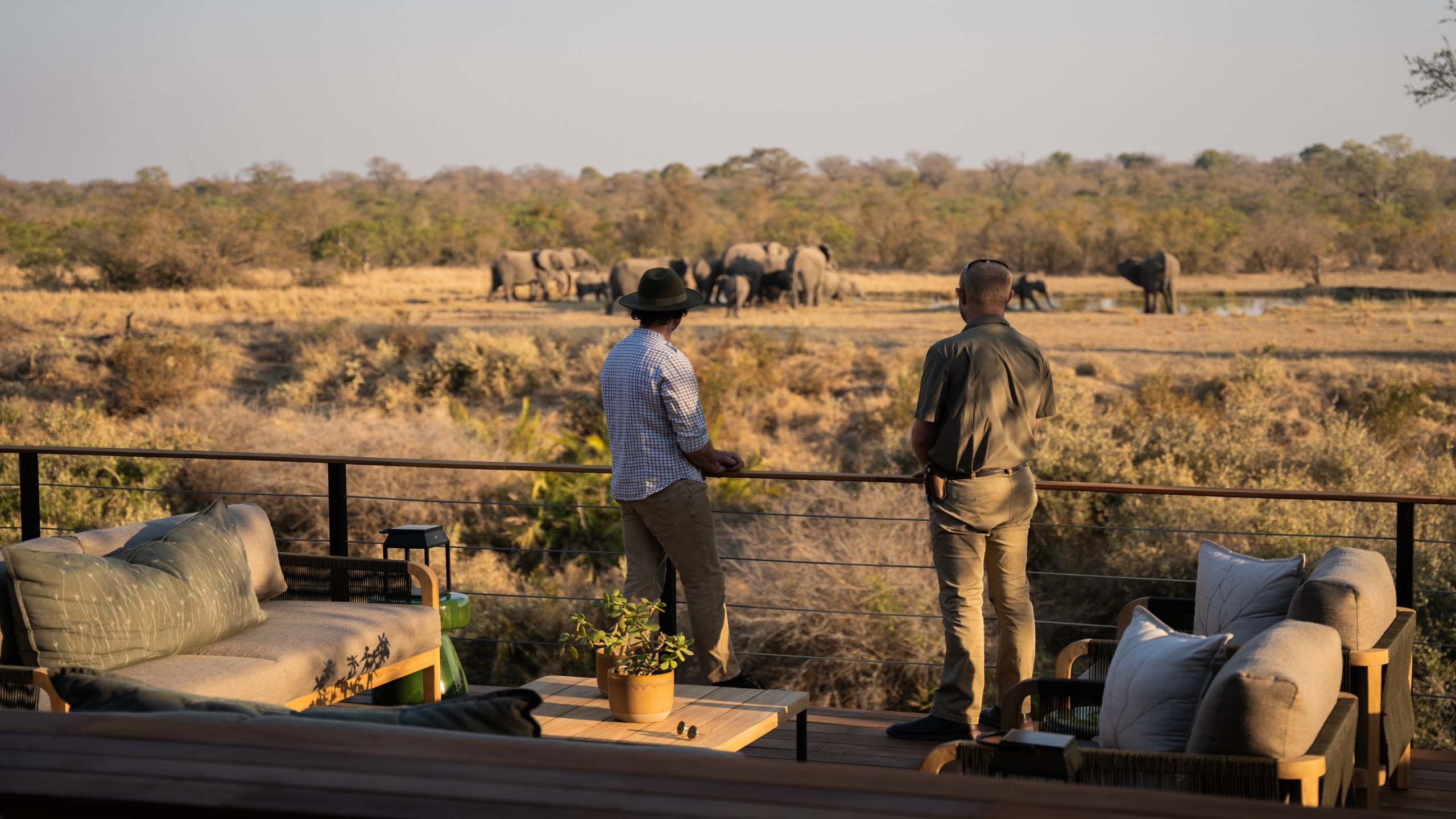 Between thickets of tall jackalberry and knobbly knobthorn trees that seasonally bloom with soft, sweet-scented flowers, Simbambili Game Lodge looks onto the meandering Manyeleti River in the Sabi Sand Game Reserve, part of the world-renowned Kruger National Park. With such nature all around beloved by wildlife, including the numerous watering areas, sightings of giraffes, elephants, warthogs and more are delightfully plentiful.
