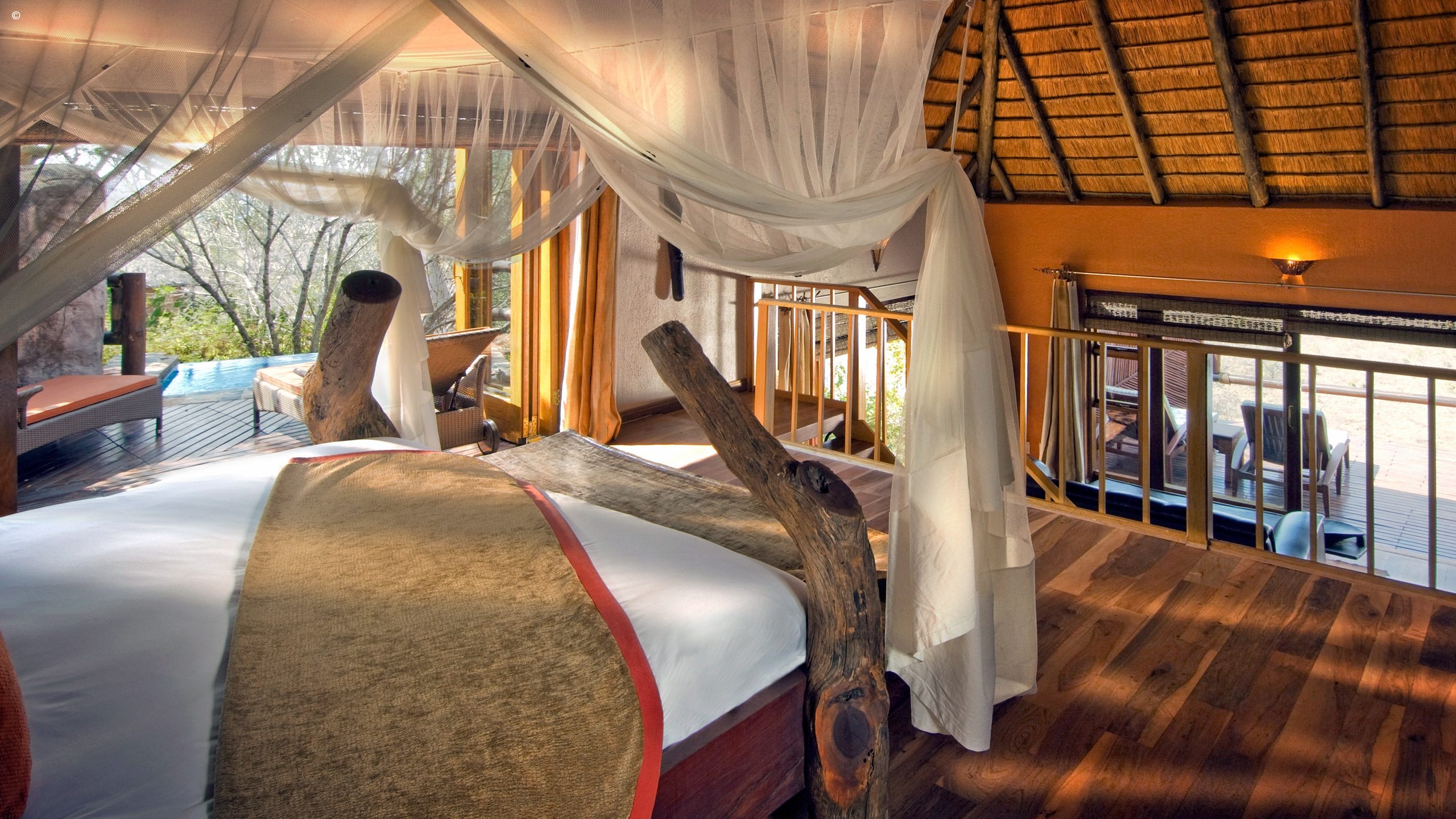 There’s no mistaking the name, this lodge and its ten rooms are all perched on a koppie (granite rock) ascending 700 feet from the lowveld and which all command incredible views over the plains of Ulusaba Reserve and the Drakensburg mountains beyond.