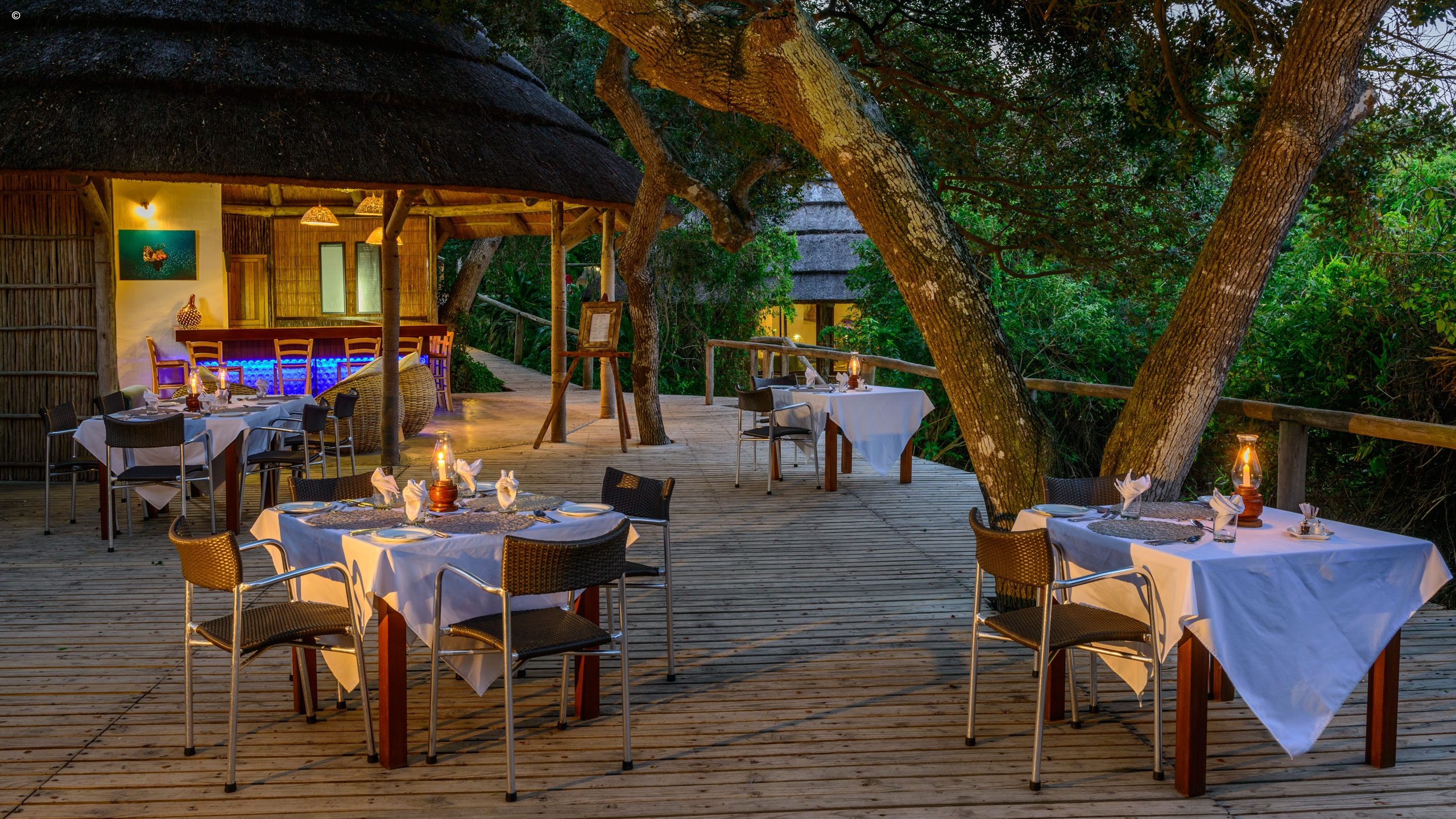 The lounge, nestled high in the canopy of the dune forest, offers panoramic views of the Indian Ocean. Alternatively enjoy sundowners in the bar lounge or on the cool deck under the Coastal Milkwood trees.