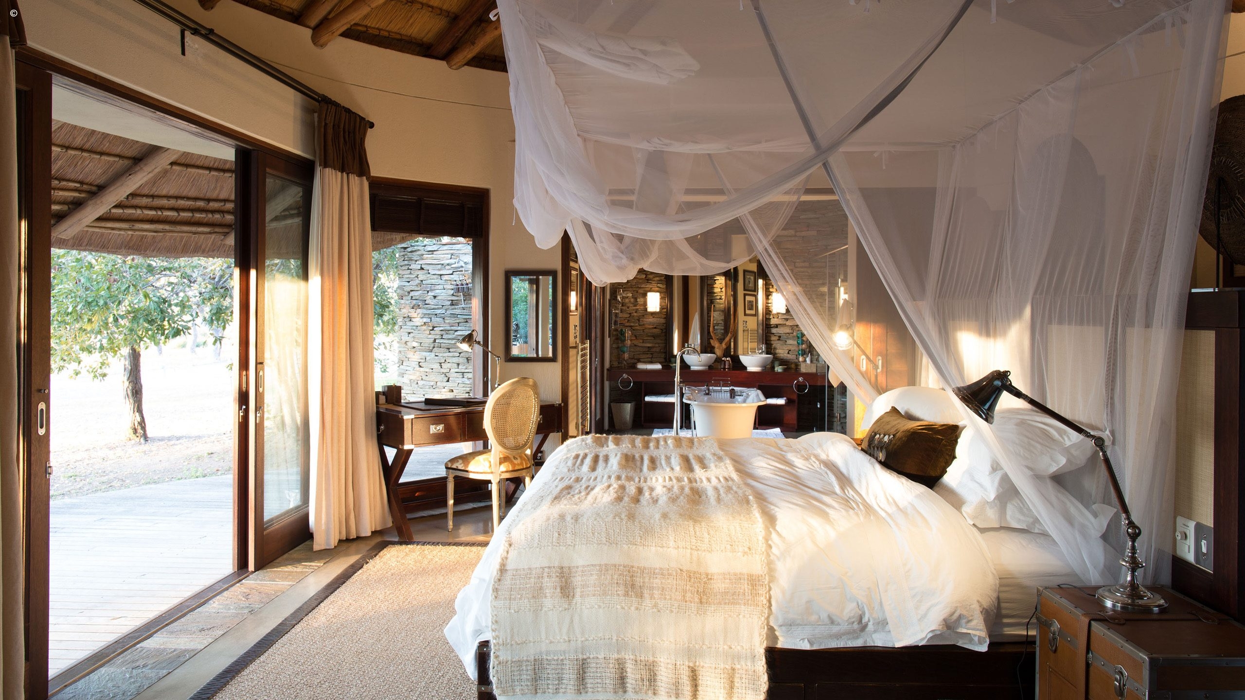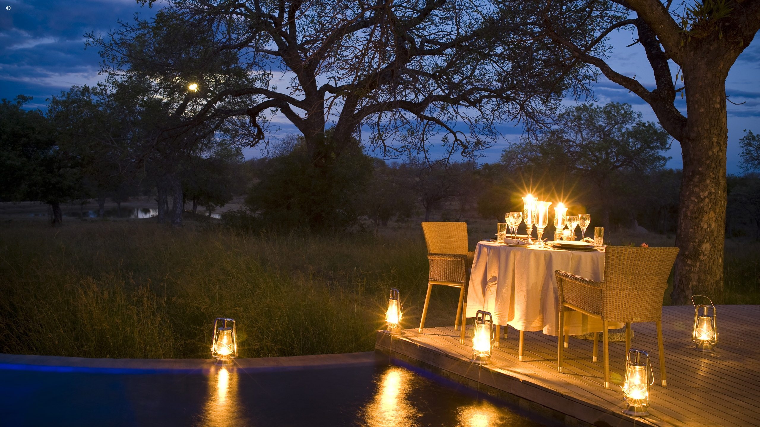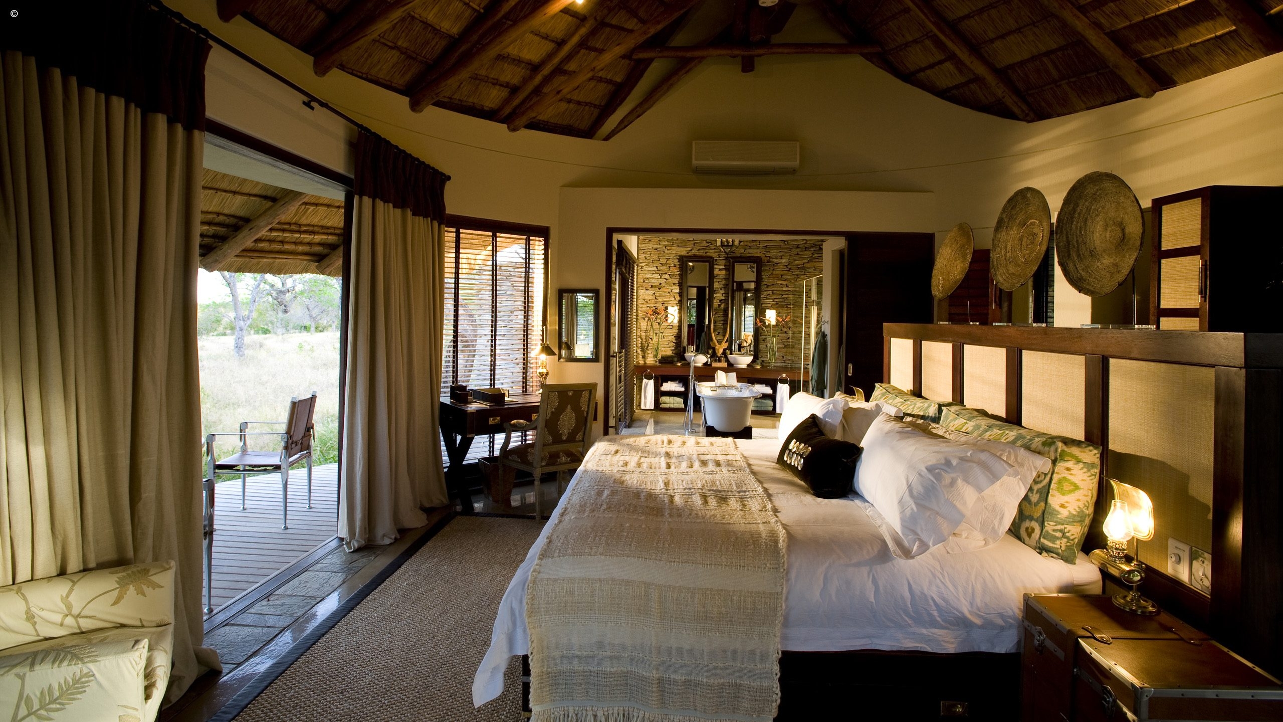 Set amidst the bush overlooking the surrounding wilderness, Makanyi’s seven luxury suites have huge beds, a sitting area with its own fireplace, a beautiful bathroom with a spacious shower and separate bathtub, a private deck and an outdoor shower. Two of the suites are special pool suites, located furthest from the main lodge and featuring four-poster beds and their own private plunge pool.