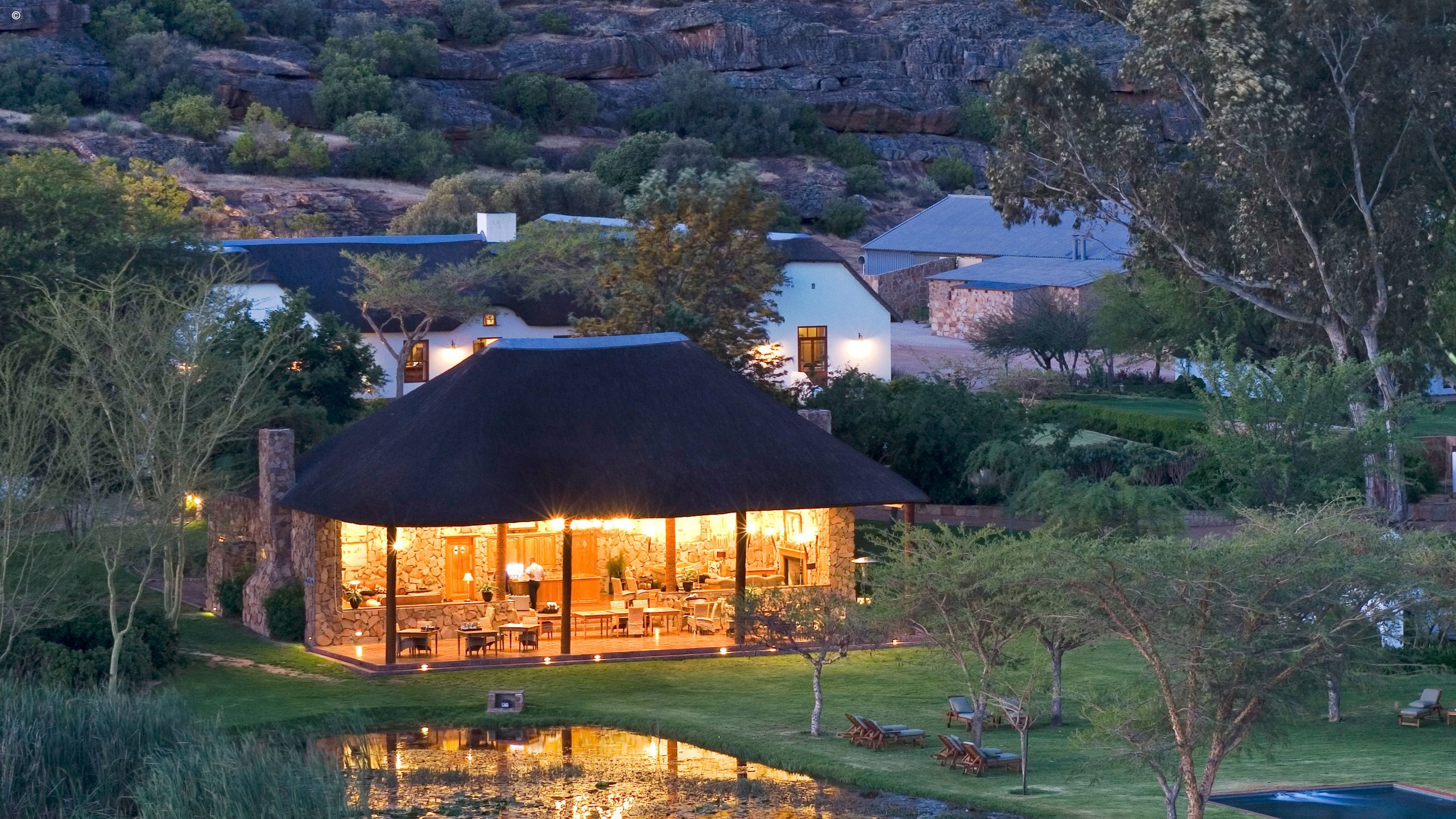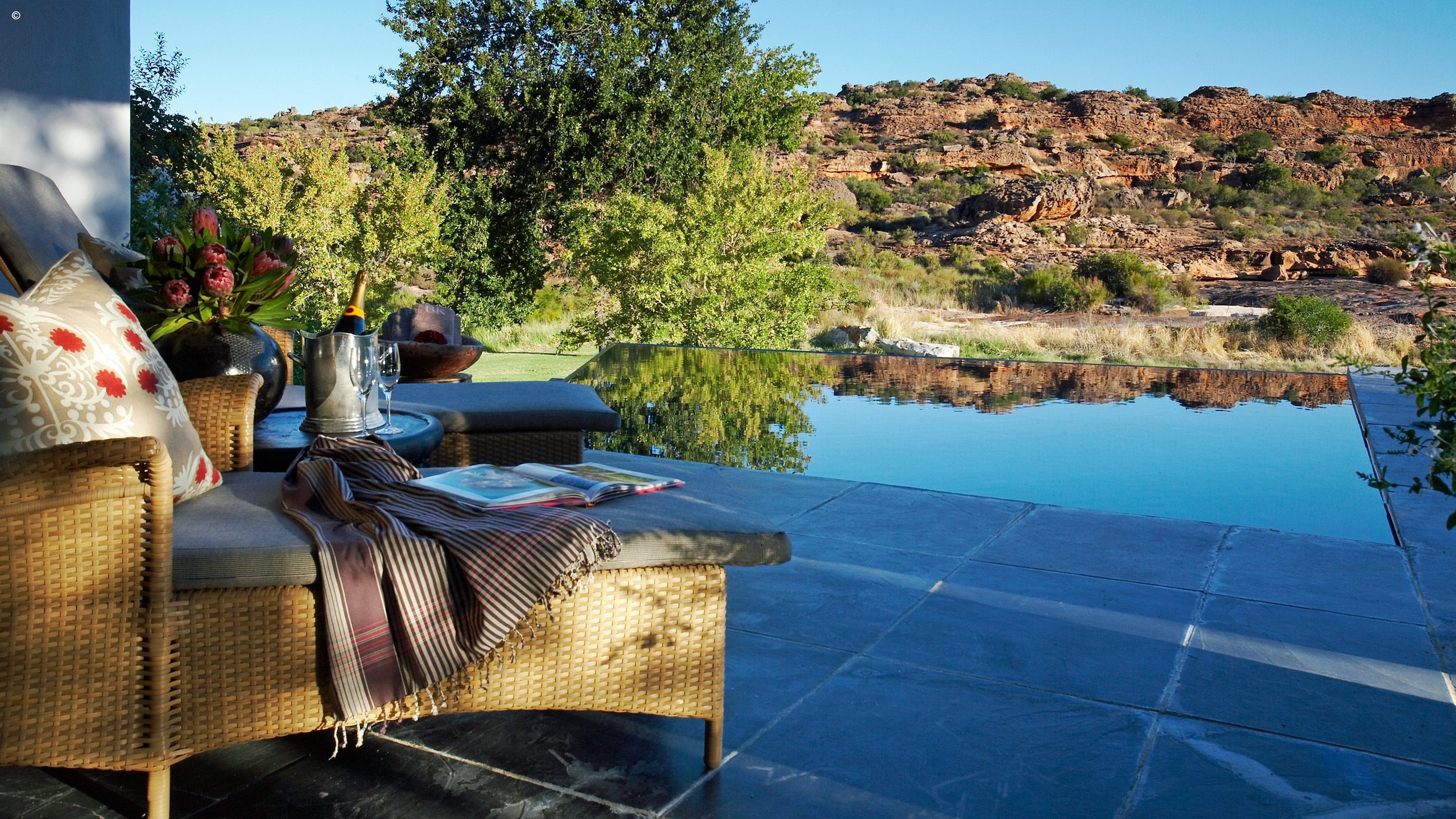 Set into a natural depression of the particularly magical terrain at Bushmans and surrounded by manicured lawns and verdant gardens which contrast heavily with the reserve’s rocky backdrop, this Relais and Chateaux property boasts four different groupings of rooms.