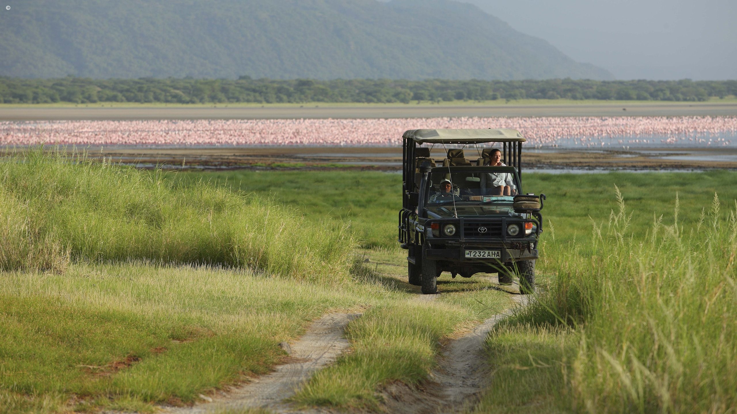 Each morning and afternoon you will set off in the company of your guide and tracker team in an open 4×4 safari vehicle, exploring the many diverse habitats of the park, from the acres of flamingos on the lake to the woodland’s tree-climbing lions and herds of elephant.